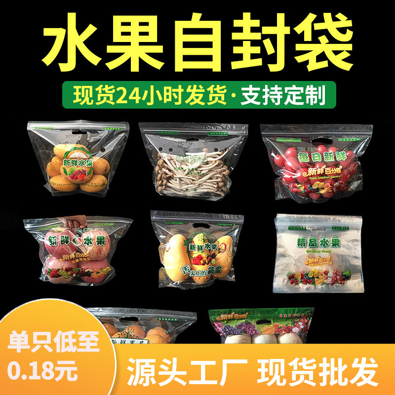現物果物包装袋透明通気穴開け果物自封袋野菜保鮮チャック式手提げ袋卸売り