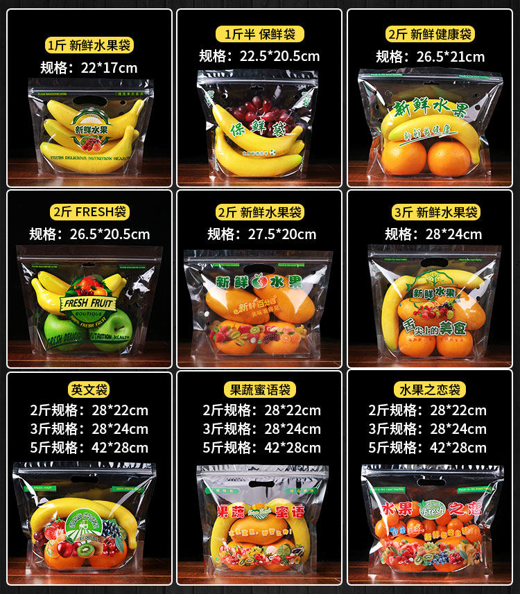 現物透明果物袋ファスナー保存袋通用野菜ブドウ自封手提げプラスチック包装袋卸売り