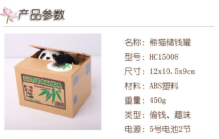 存銭是个好习惯,零碎的小钱积攒起来也是一笔不可小亏的数目了!在你想养成这个习惯吗?那这款偷钱熊猫钱罐可以帮你哦,赶快行动吧!把这款可爱的偷钱熊猫带会去吧