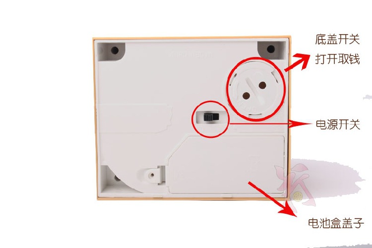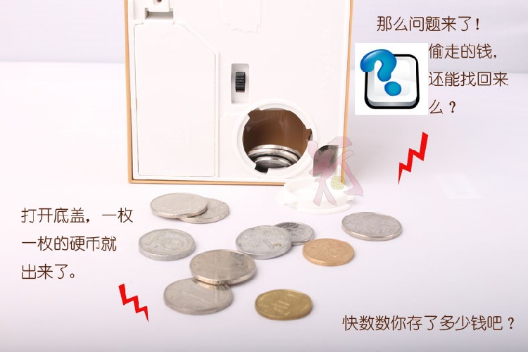 提示:被偷走的硬币不用担心,盒子底下有个开关,打开就可以把硬币取出!