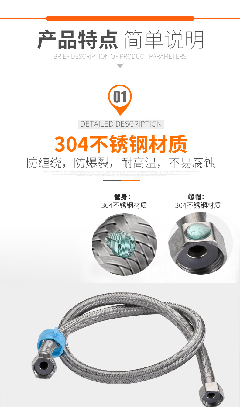 蛇口給水管防爆菜盆冷熱上水管304ステンレス編組先ホース部品