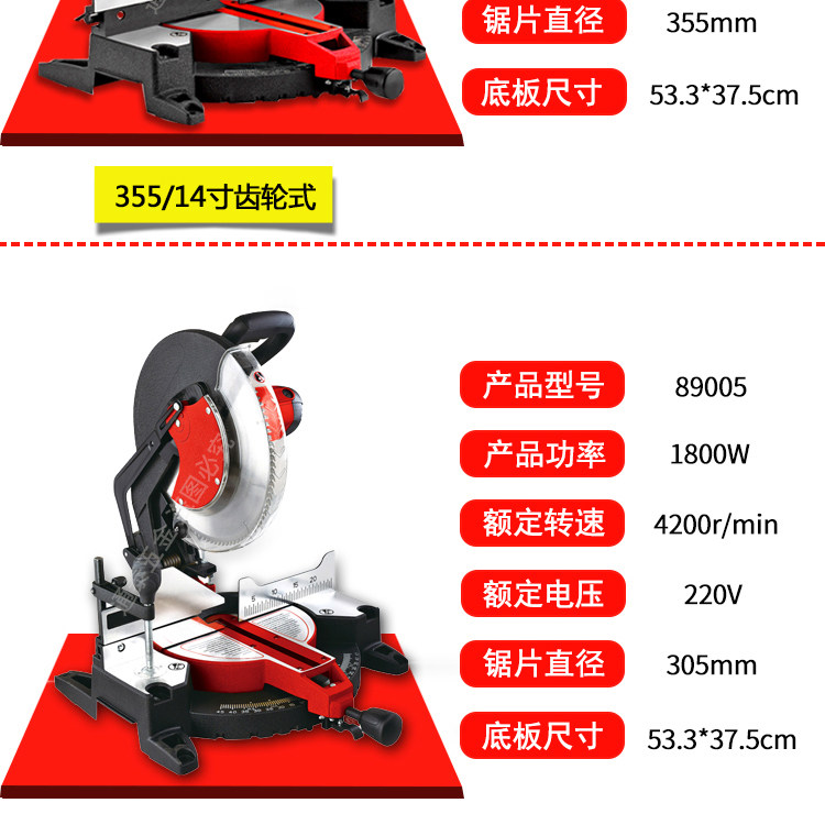 百聞多機能12/14インチ355界鋸アルミニウム合金木材形材45度高精度斜切断機