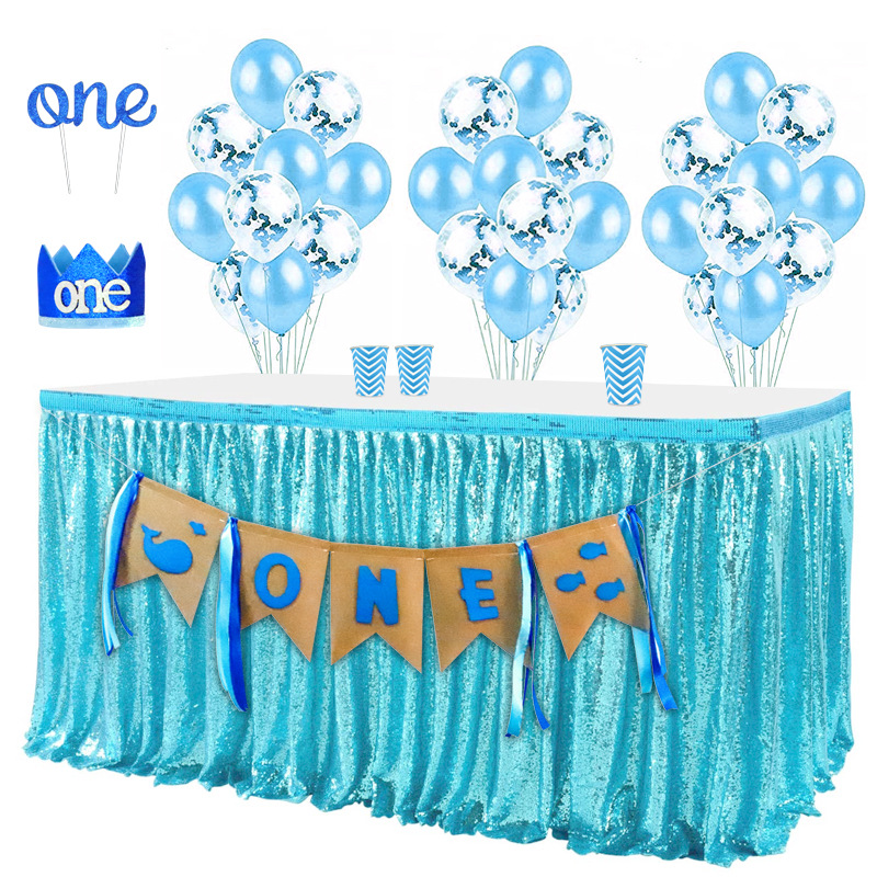 子供の誕生日パーティー赤ちゃんの誕生日フラッグセットテーブルと椅子スカートフラッグクラウンケーキインサートバルーンセット