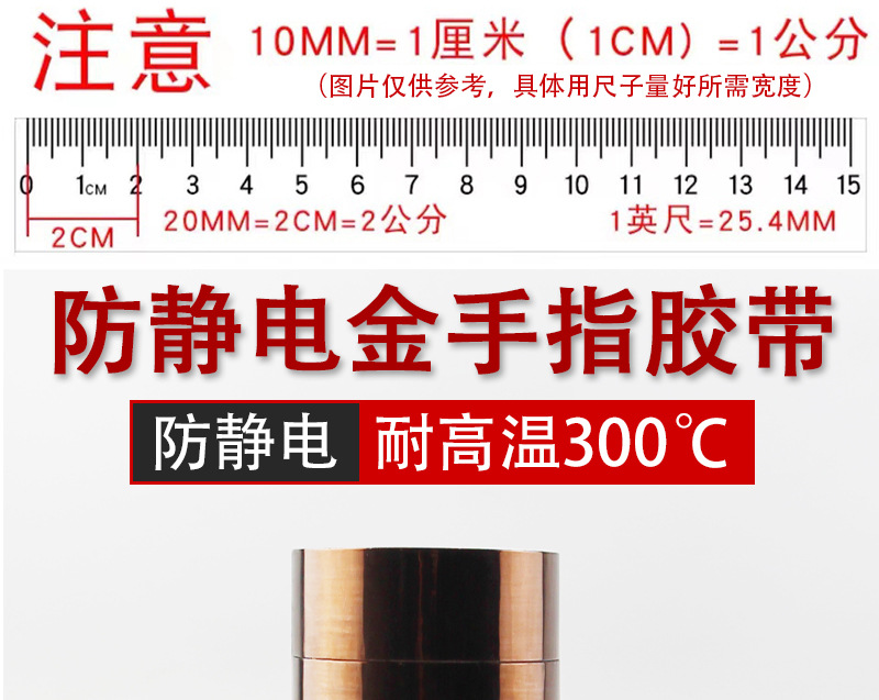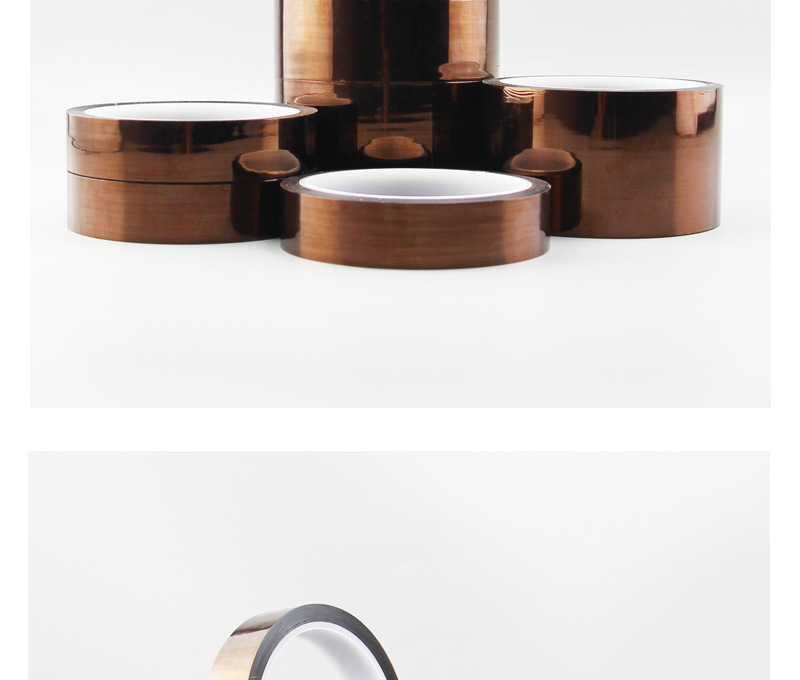 カプトン茶色片面金指テープ絶縁耐高温不残糊ポリイミドテープ100メートル長さ