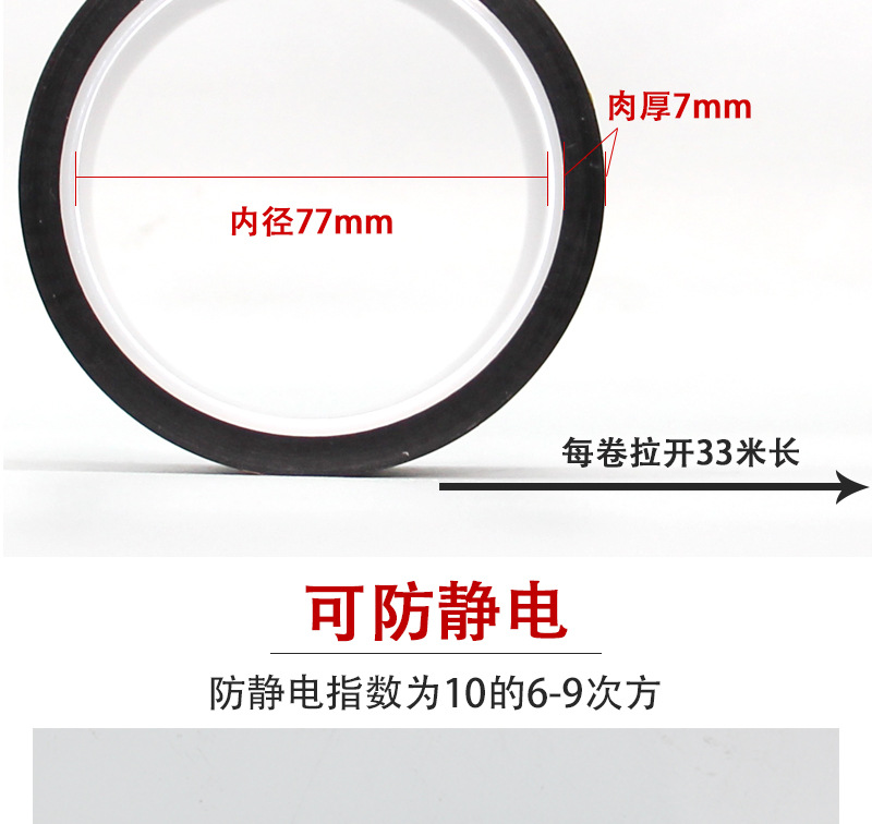 黒色pet耐高温フィリンテープ無痕遮光変圧器専用電池絶縁テープ帯域幅1-2-5cm