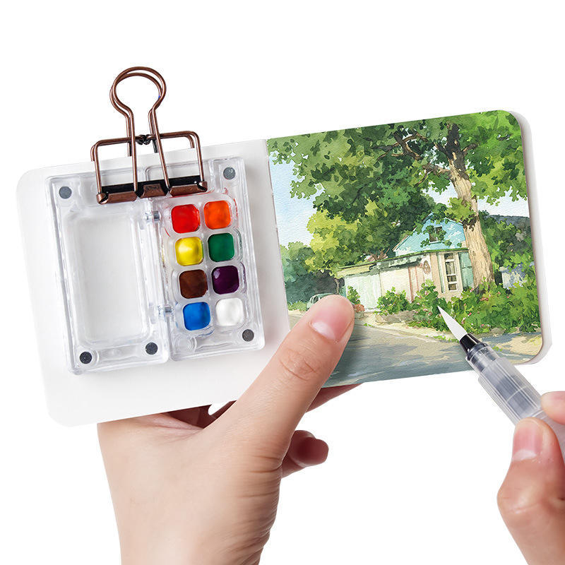 跨境艺术家湿盒调色板微型托盘式绘画调色盘户外旅游颜料板画板
