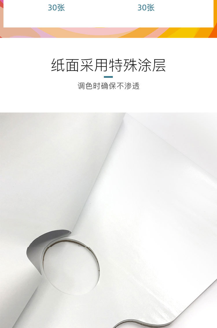 30页免洗调色纸单面可撕调色纸 水粉油画调色纸美术免洗调色纸ins
