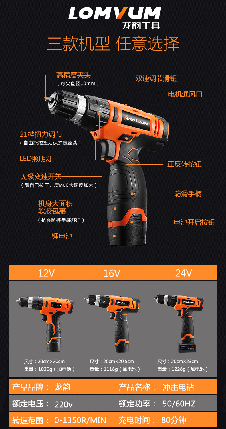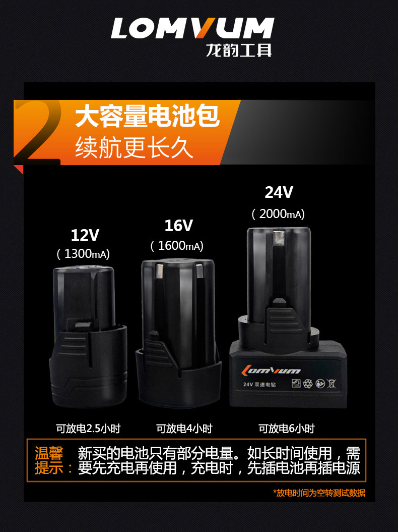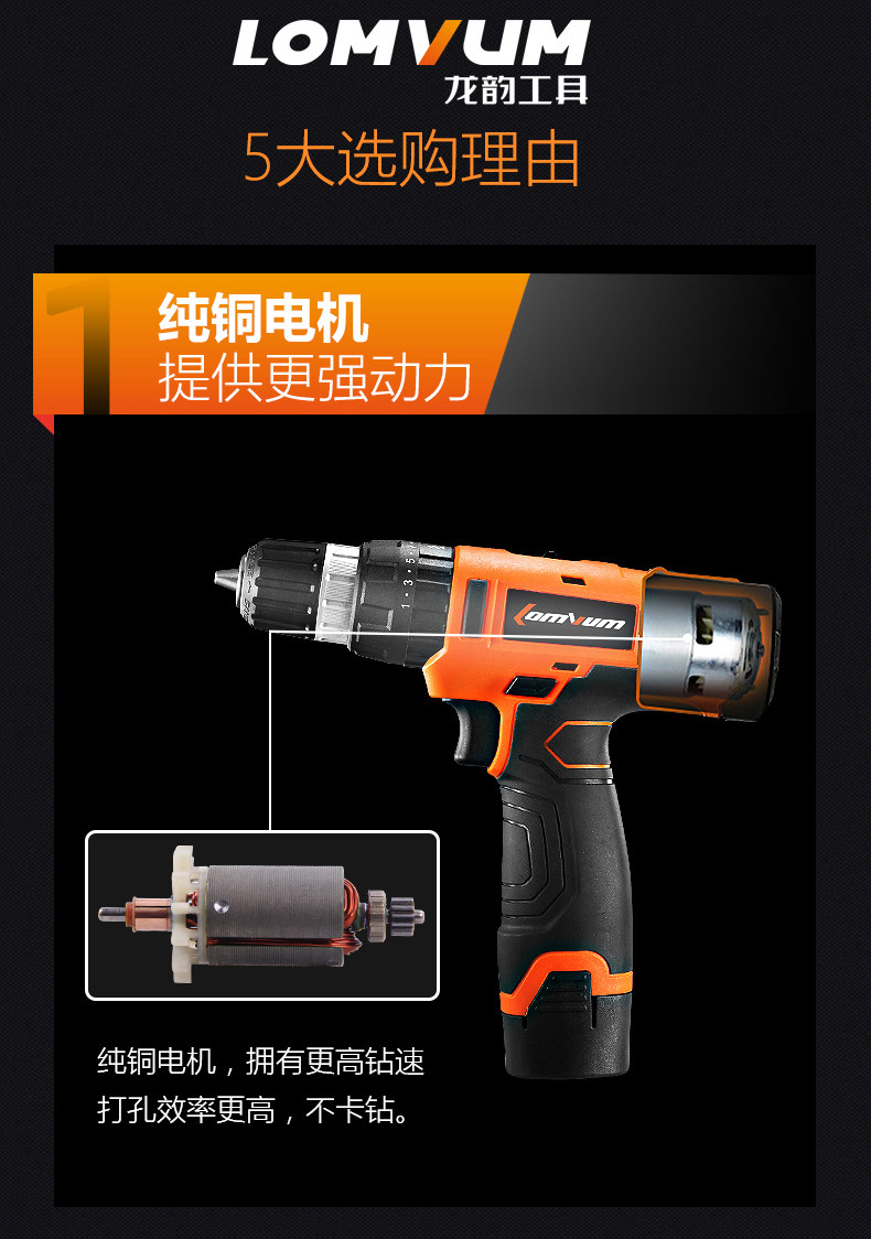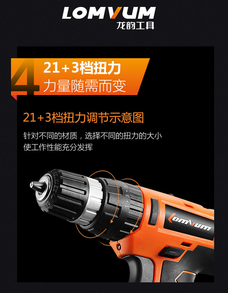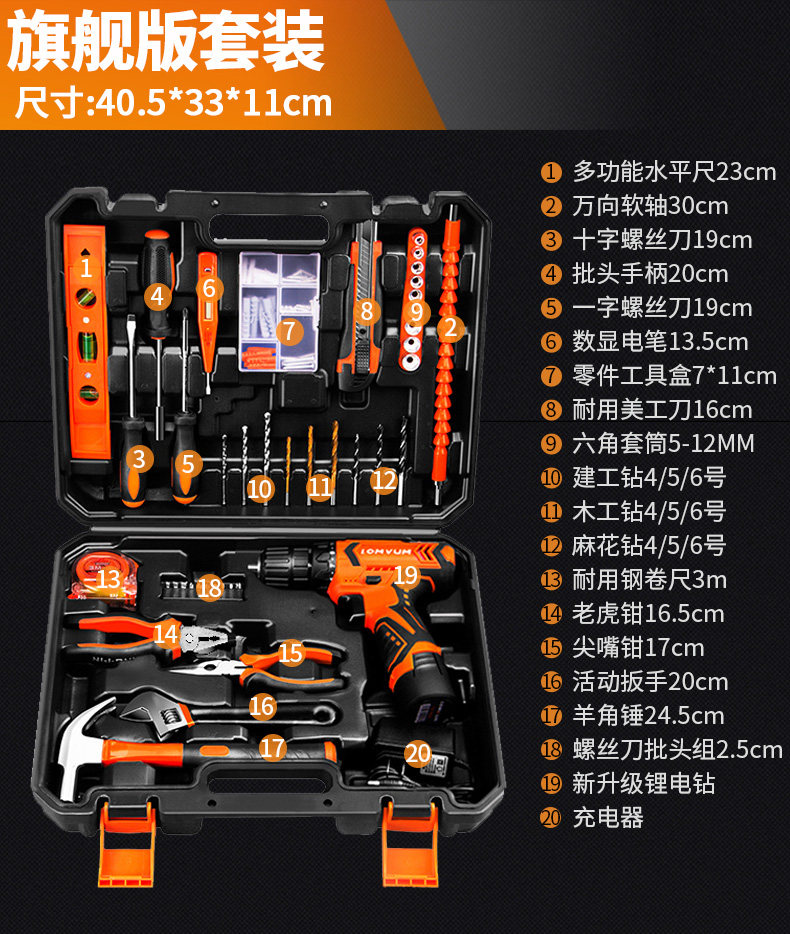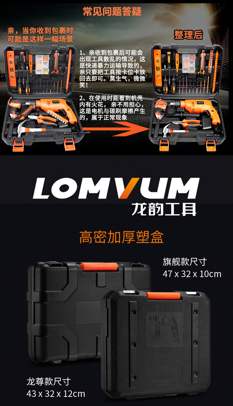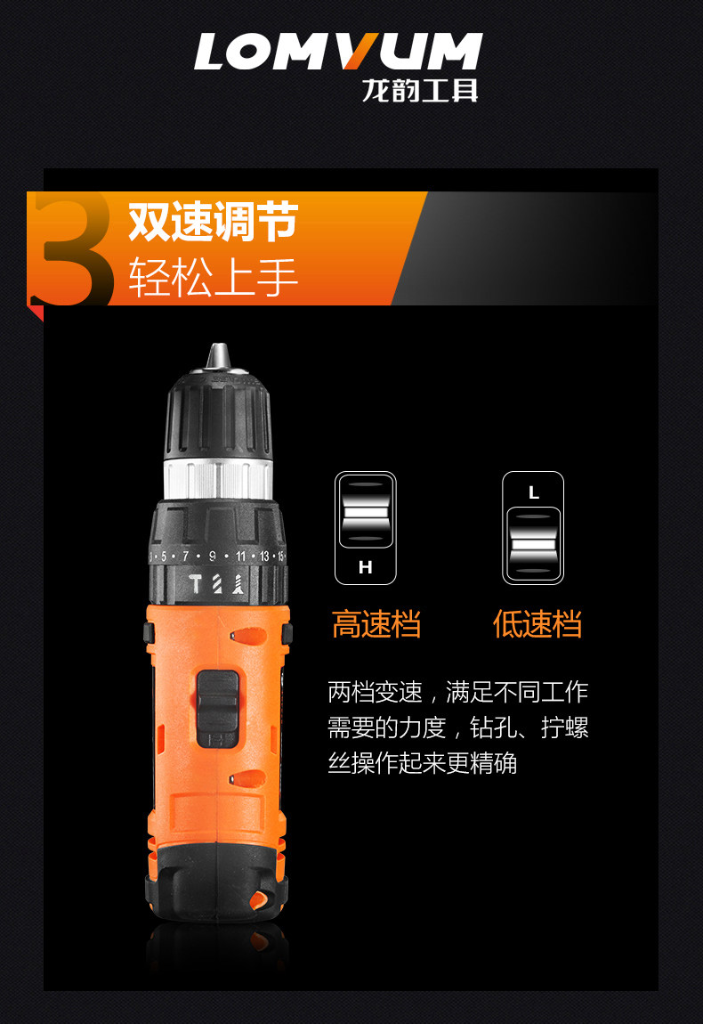 包郵便龍韻リチウム電気インパクトドリル家庭用工具箱セット電動ドライバー2速ピストルドリル充電式手