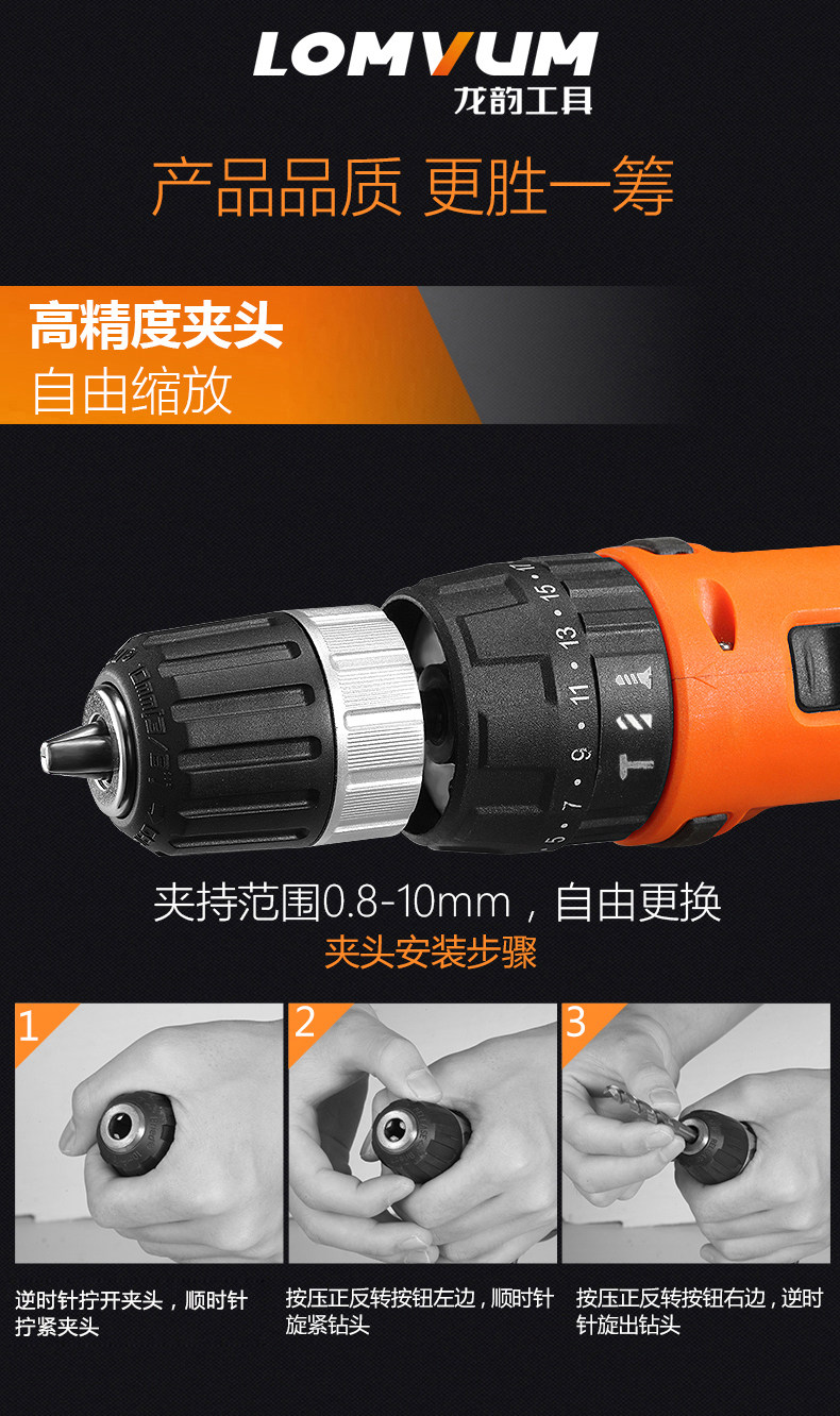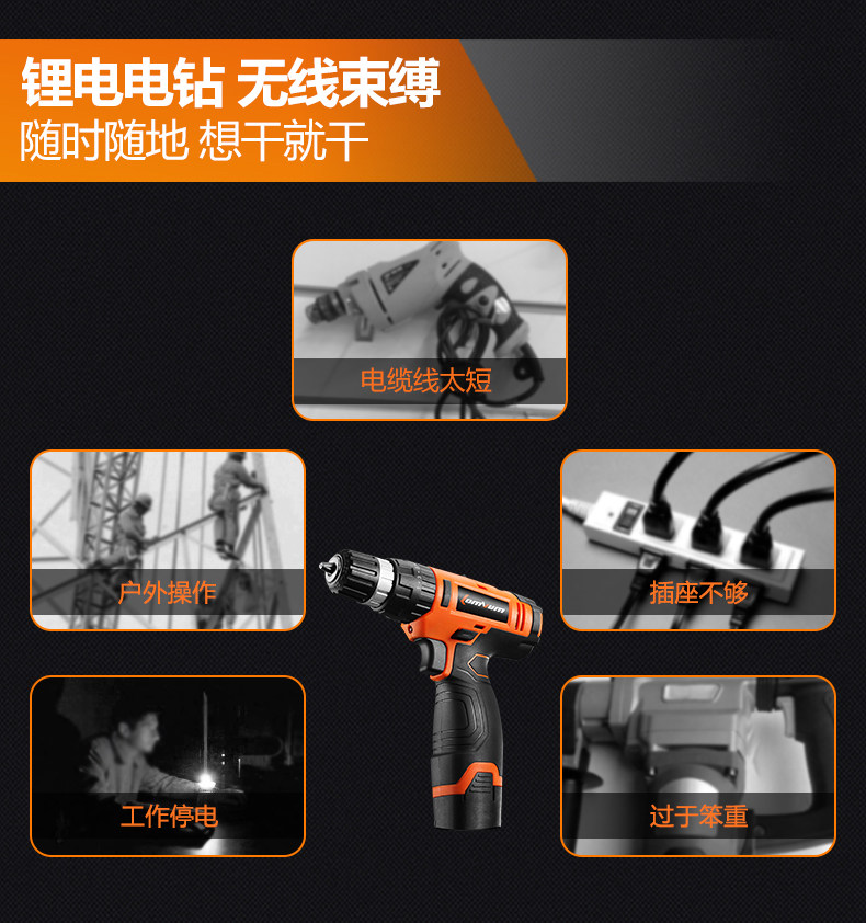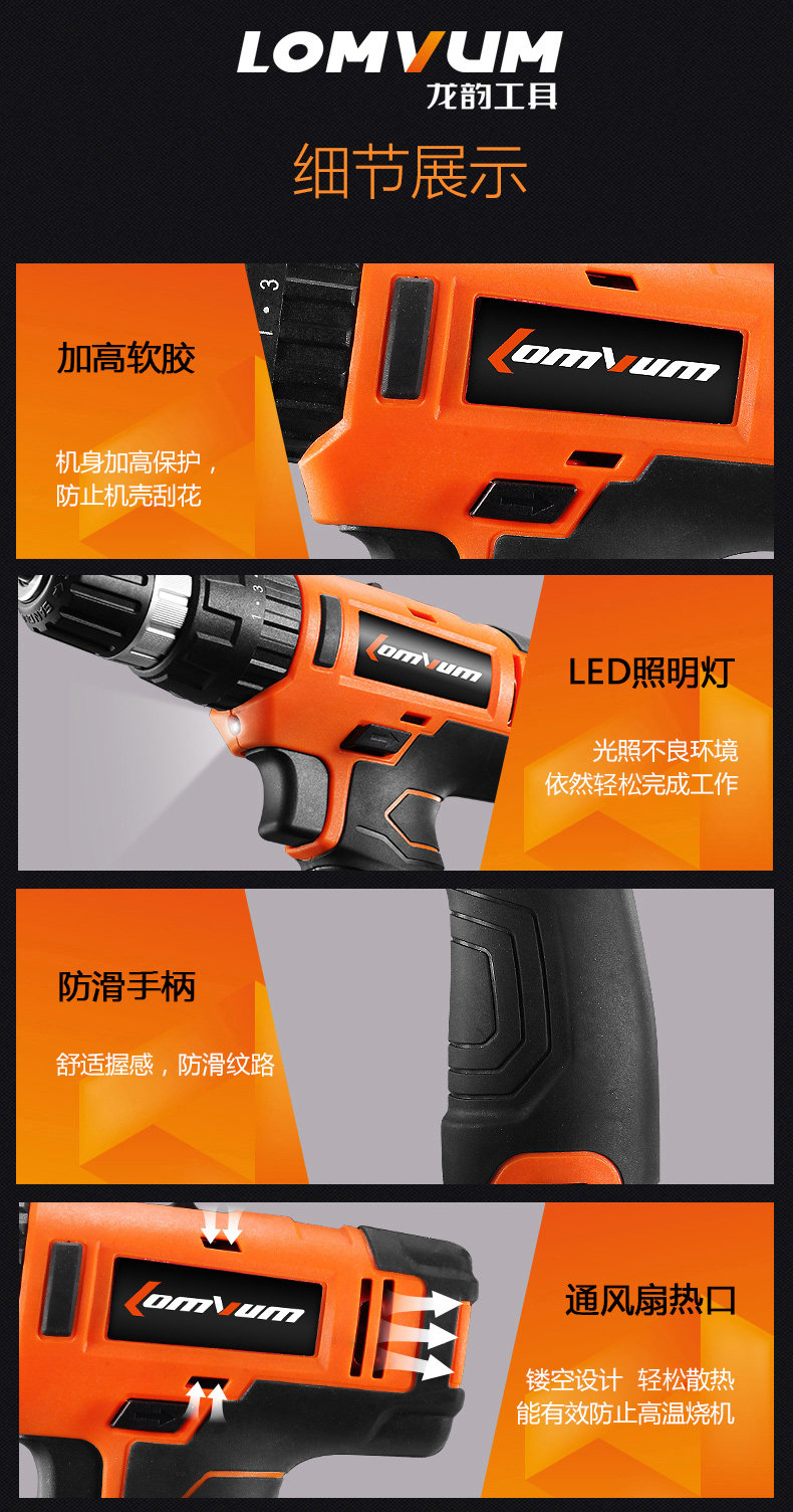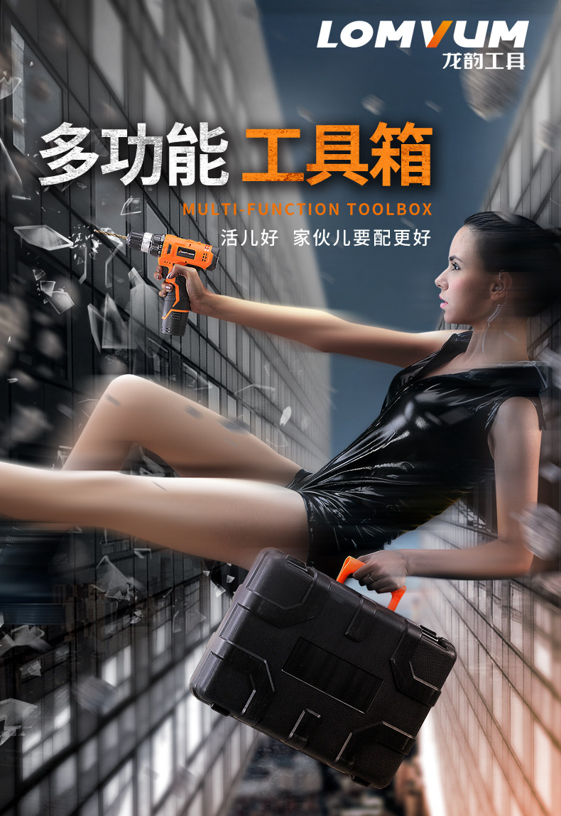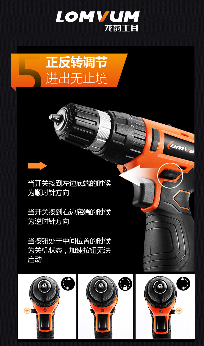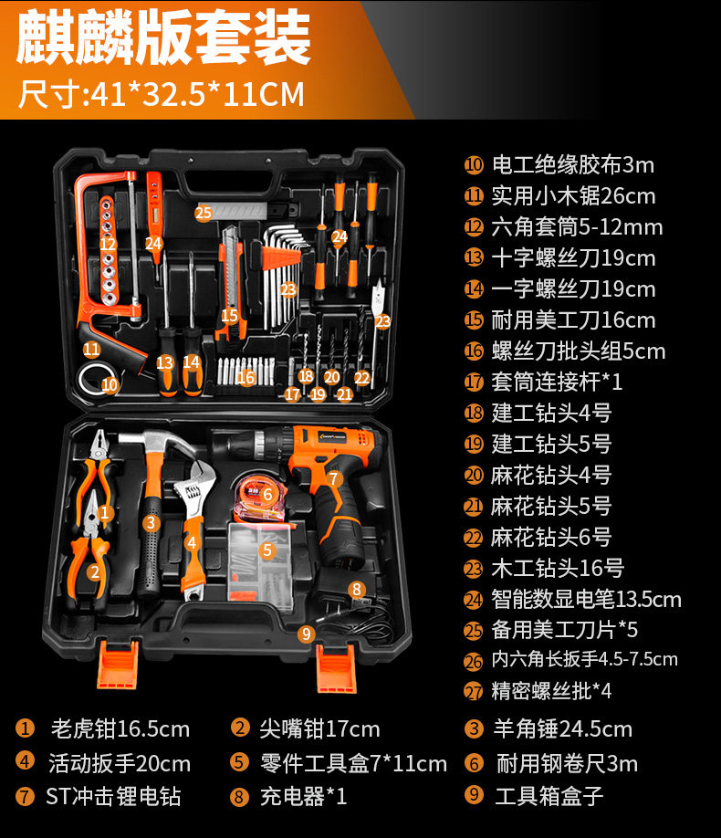 包郵便龍韻リチウム電気インパクトドリル家庭用工具箱セット電動ドライバー2速ピストルドリル充電式手