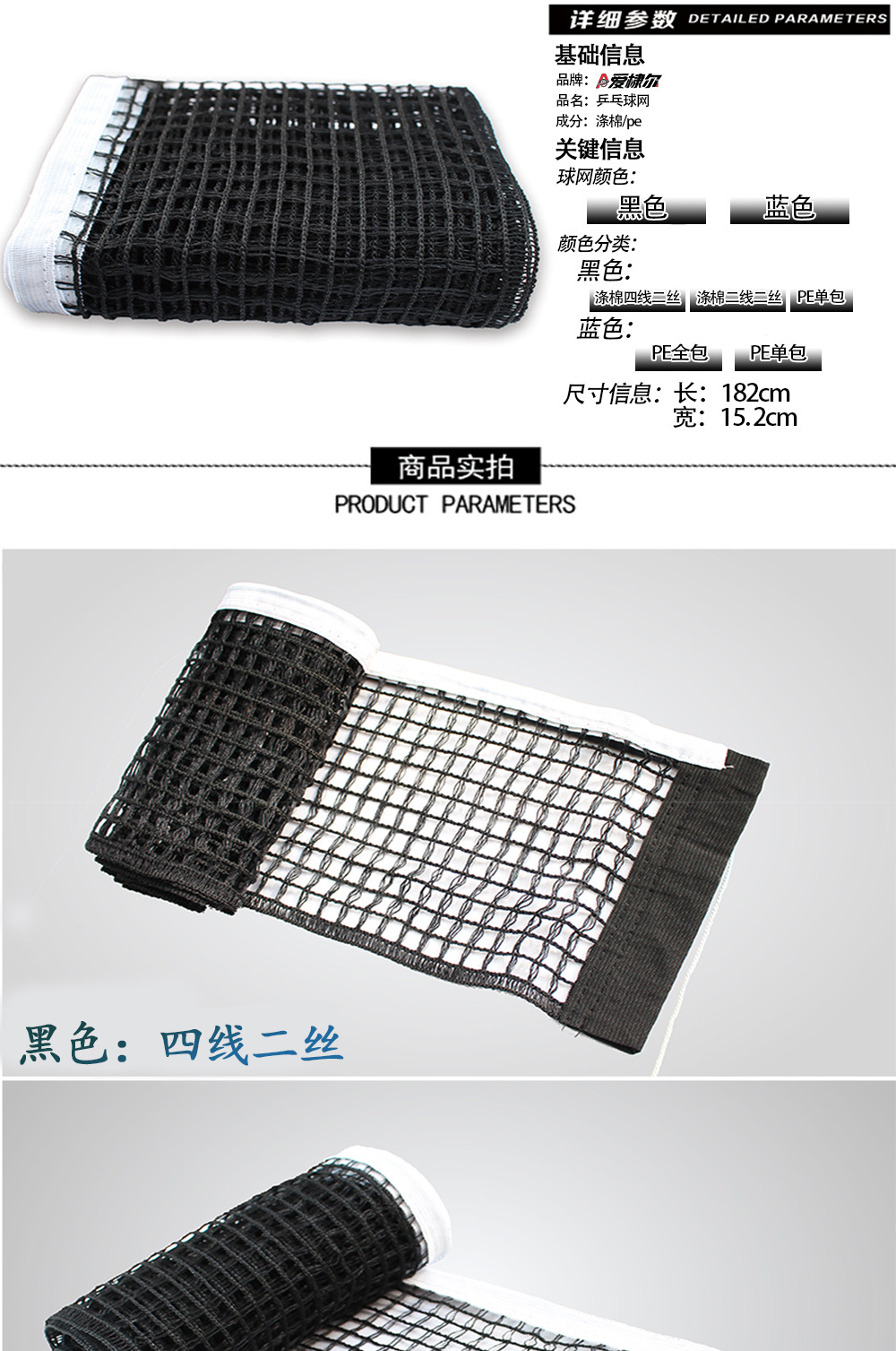 乒乓球网便携式PE聚乙烯涤棉乒乓球桌网拦网标准比赛乒乓球台网