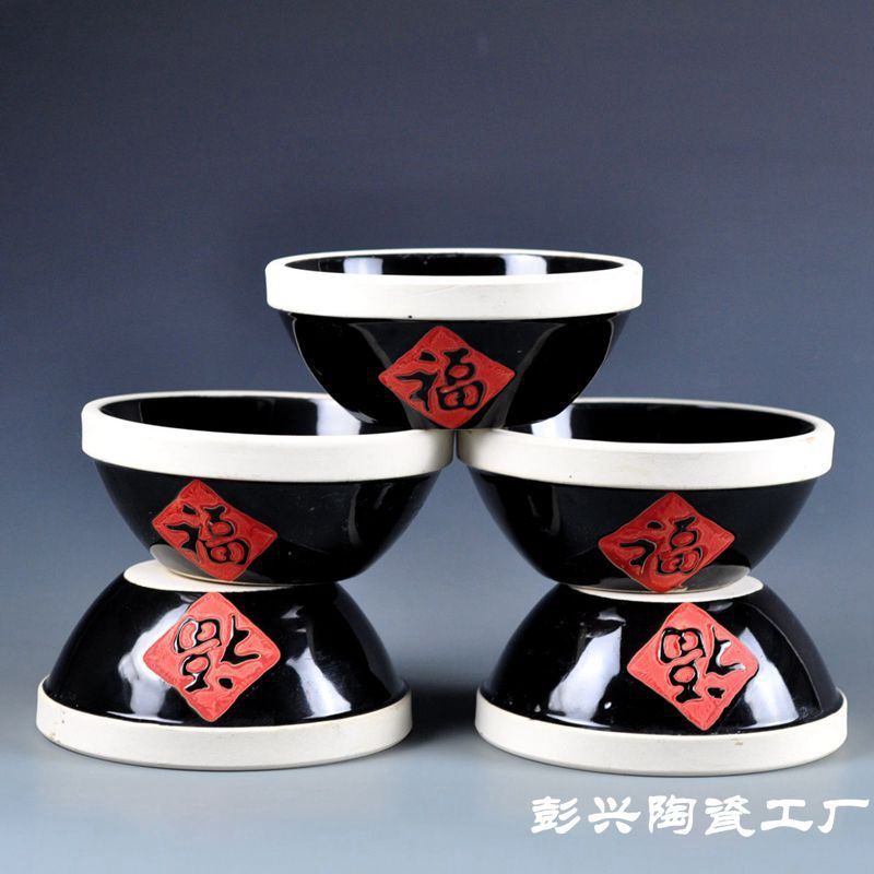 陶磁器の福の字の碗の土陶の食器の農家楽の特色の料理の食器の農家のご飯の碗の福の字の民俗の酒の碗の蒸し碗