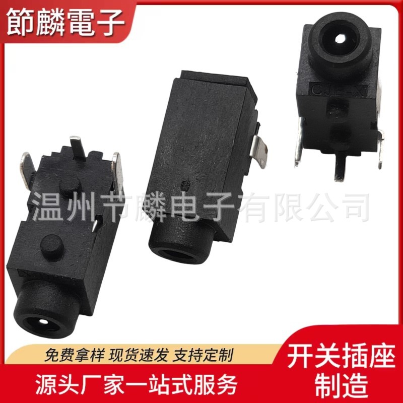 3.5mmイヤホンソケットPJ-392縦型3本2チャンネルステレオねじ付きナットオーディオソケット