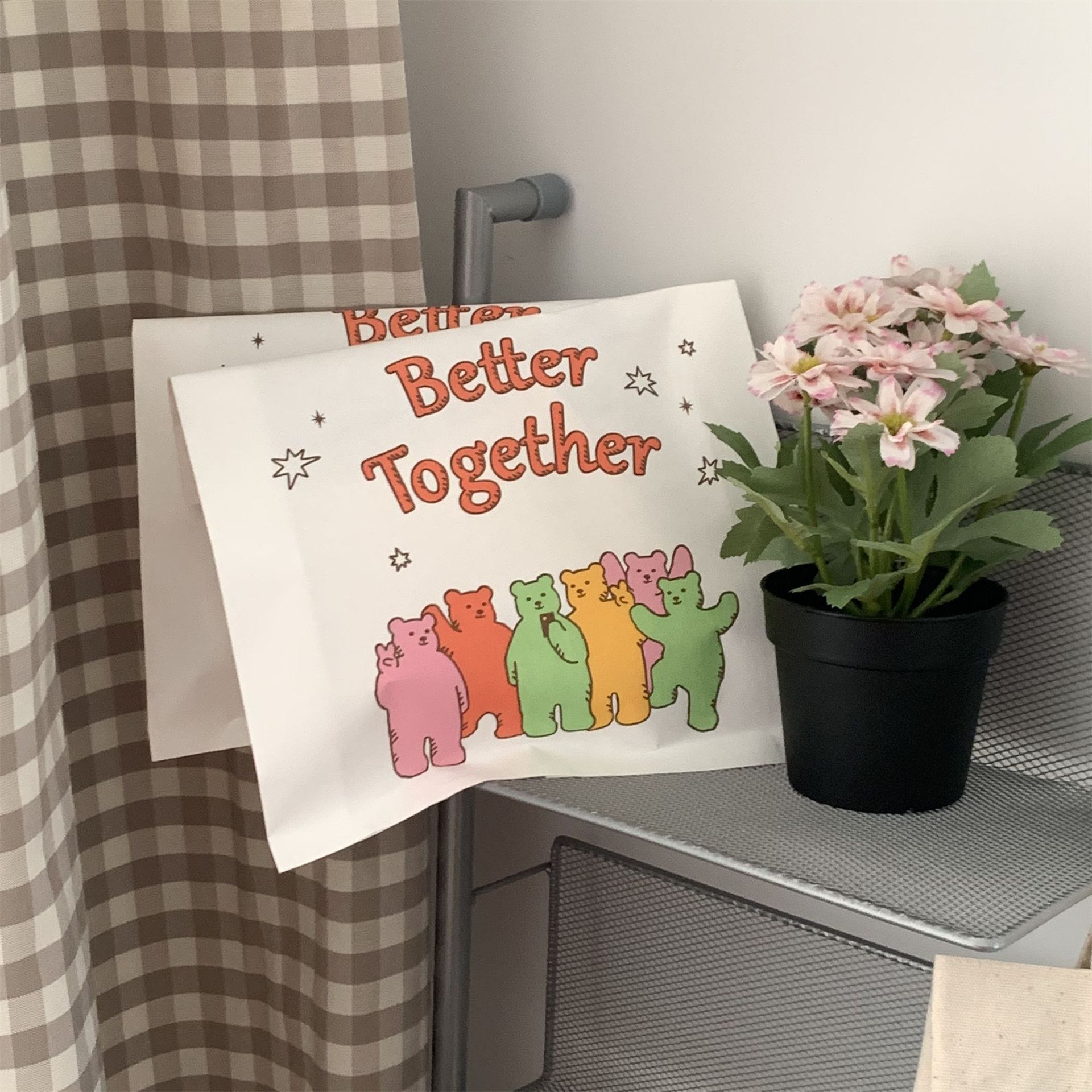 Ins風白クラフト紙袋アニメ熊の友人はギフトバッグ靴下下着食品包装袋を厚くして収納する