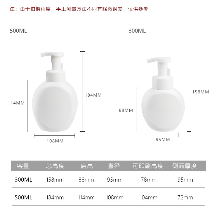 500ml手洗い瓶300ml押し泡立てムース分注瓶白い洗顔料瓶プラスチック洗浄保護瓶