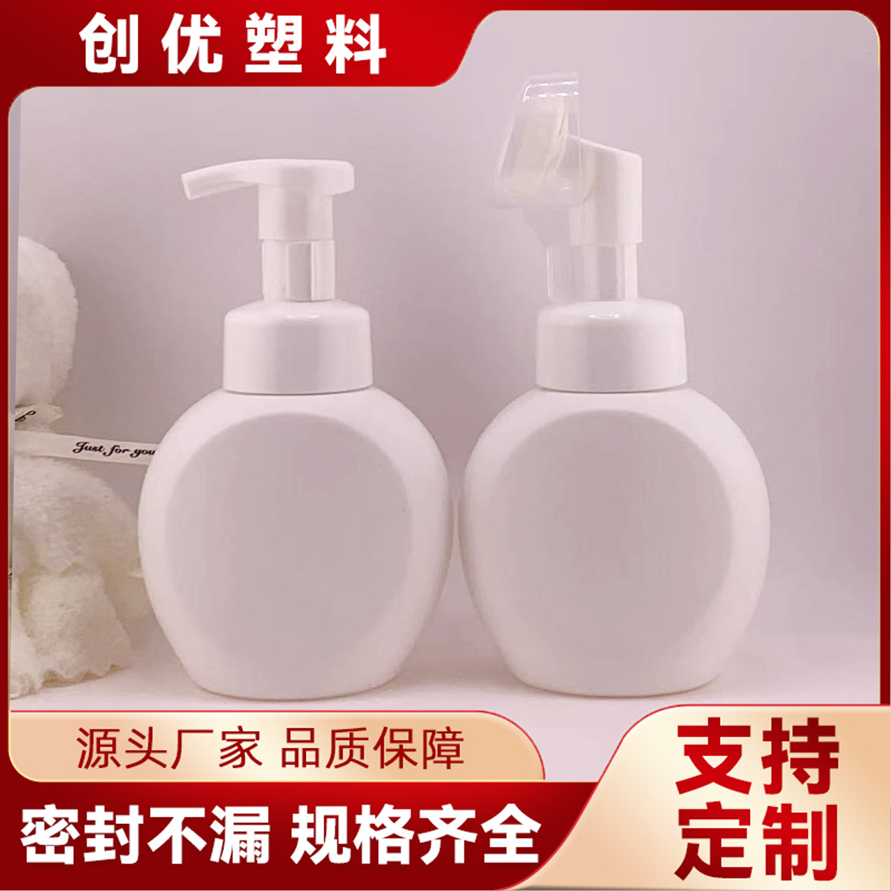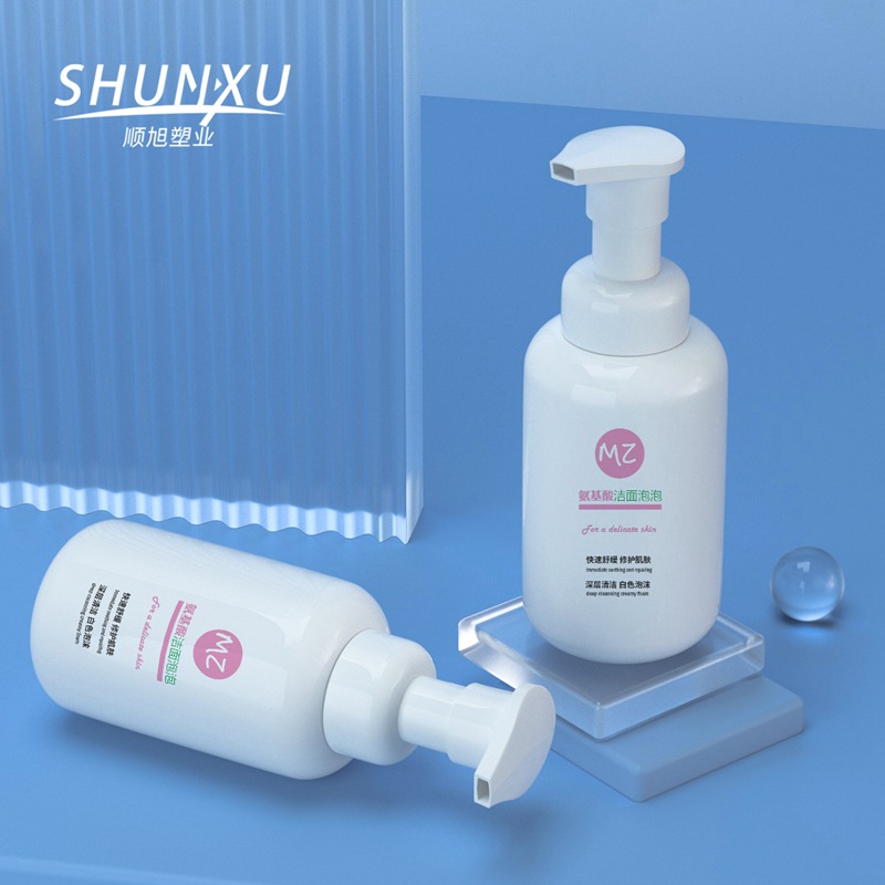 批发330ml泡沫洗手液瓶 花朵泡沫洗面奶塑料瓶HDPE扁瓶慕斯起泡瓶