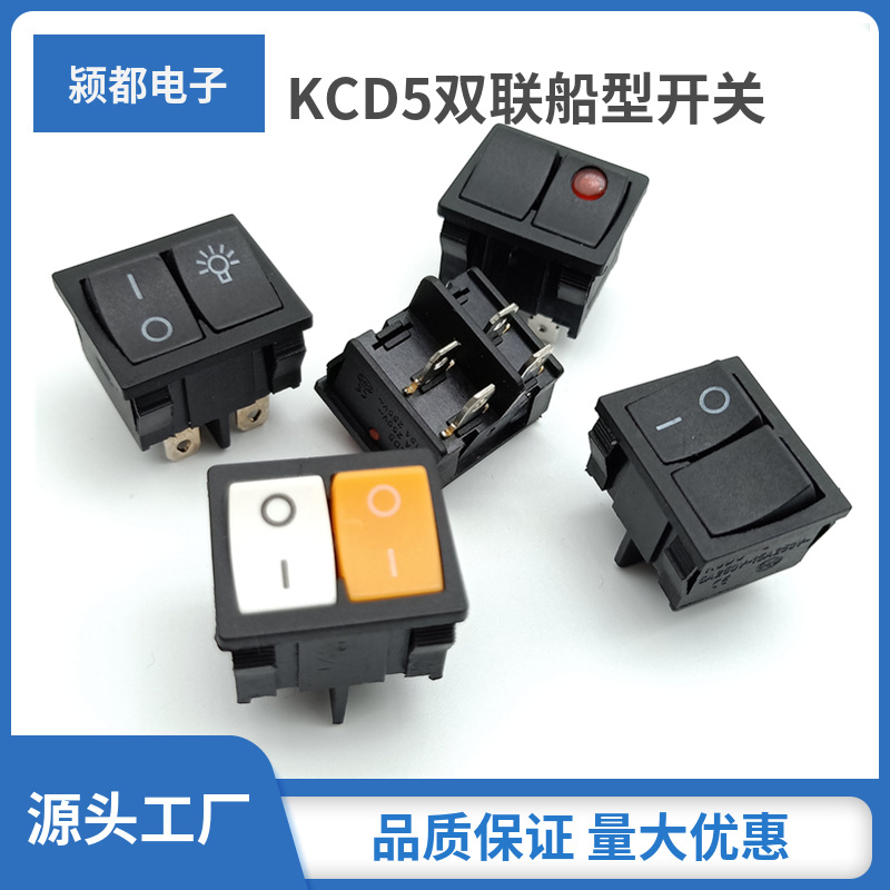 船型开关也称,随着电子开关行业的发展,也有人叫翘板开关。其结构与钮子开关相同,只是把钮柄换成船型。船型开关常用作电子设备的电源开关,其触点分为单刀单掷和双刀双掷等几种,有些开关还带有指示灯。