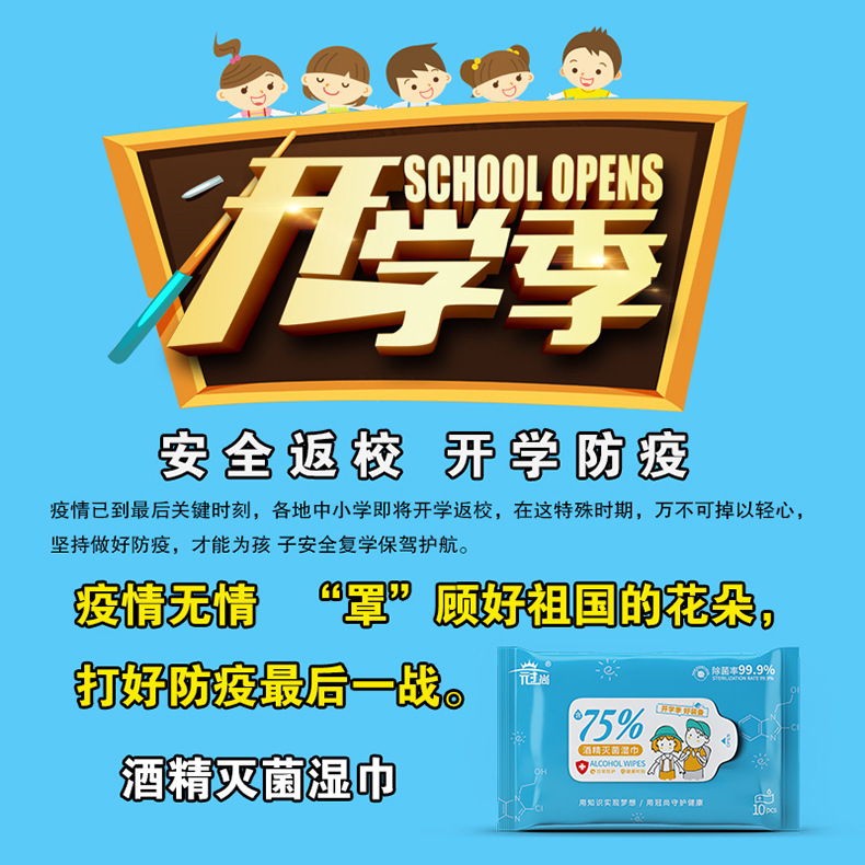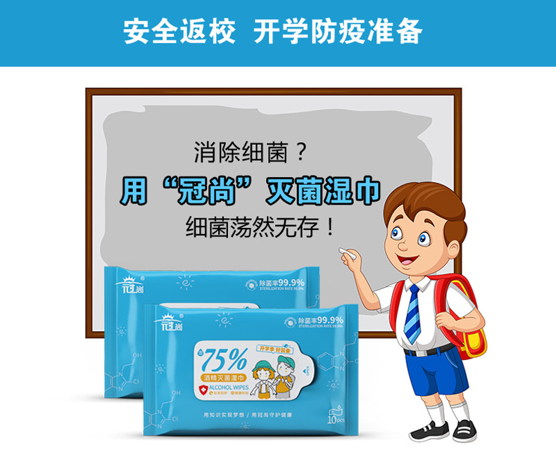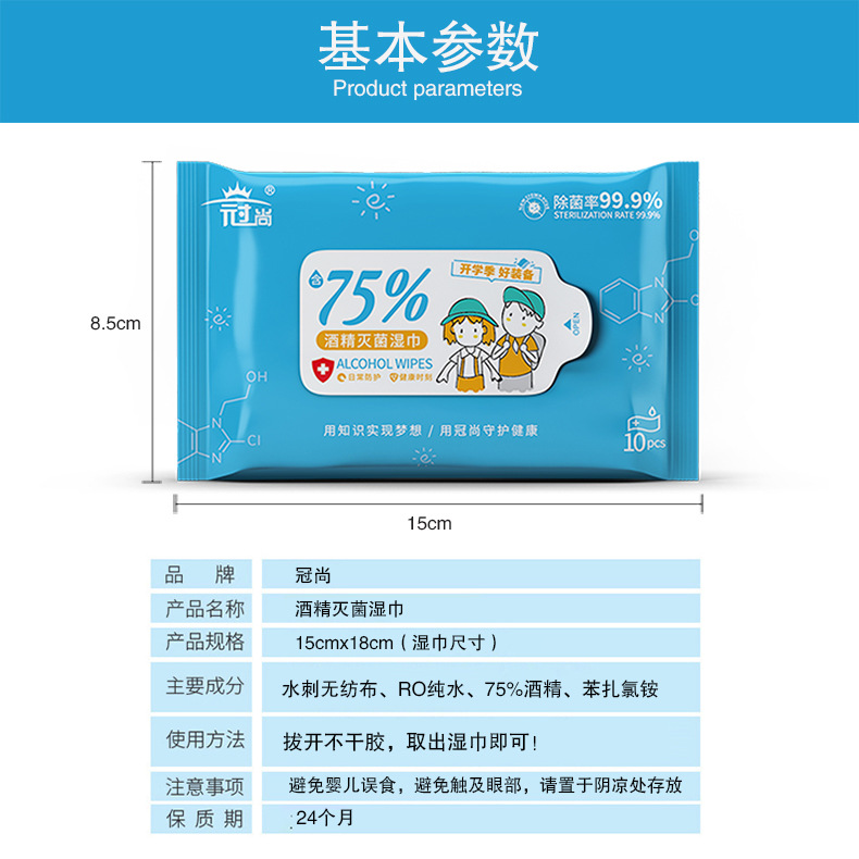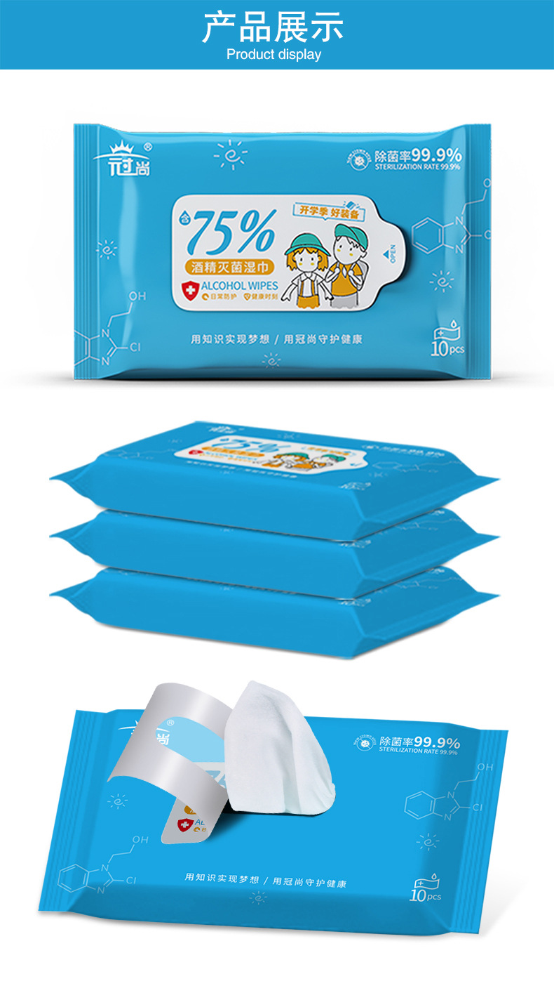 学生用消毒ウェットティッシュ10枚入りスポット75% アルコールを含むウェットティッシュ殺菌携帯ウェットティッシュをカスタマイズする