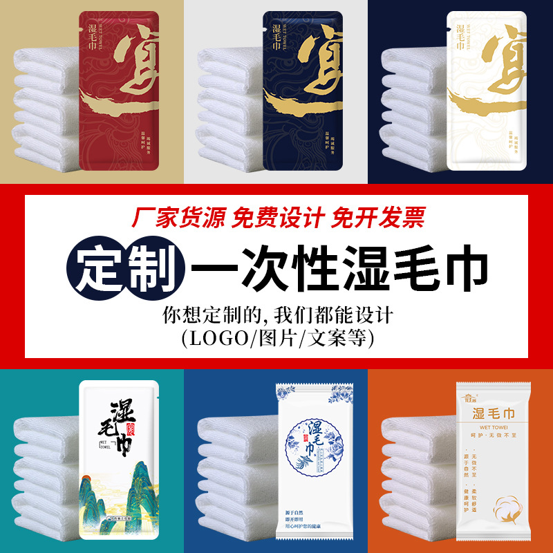 一次性湿巾现货酒店餐饮外卖单片独立小包装商用消毒湿纸巾印LOGO