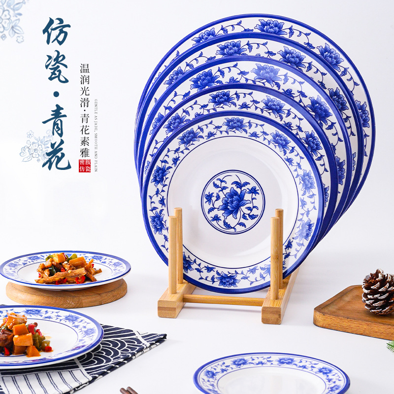 A5青花磁器メラミン皿プラスチック円盤平盤模造磁器食器レストランレストラン炒め皿皿皿骨皿