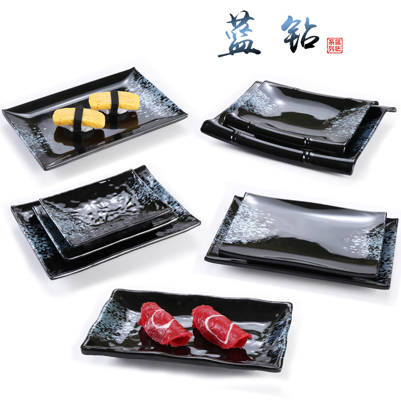 アイデアは磁器の黒いフロストの皿の和菓子の軽食の皿の韓国式の料理の寿司の皿のメラミンの食器の皿をまねます。