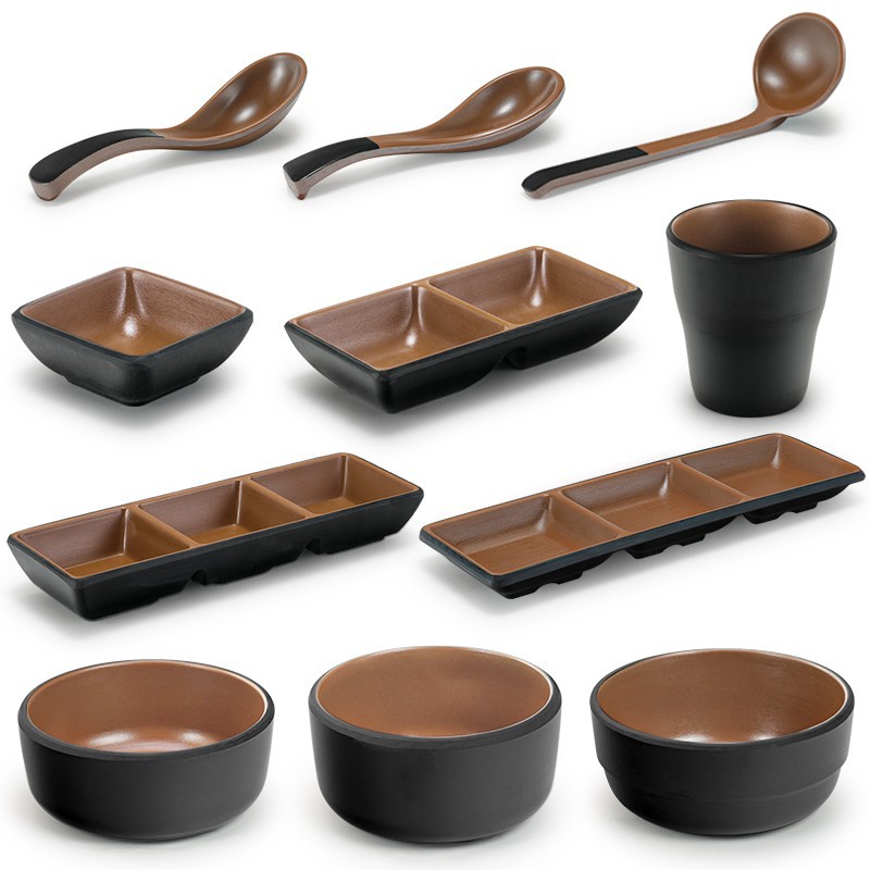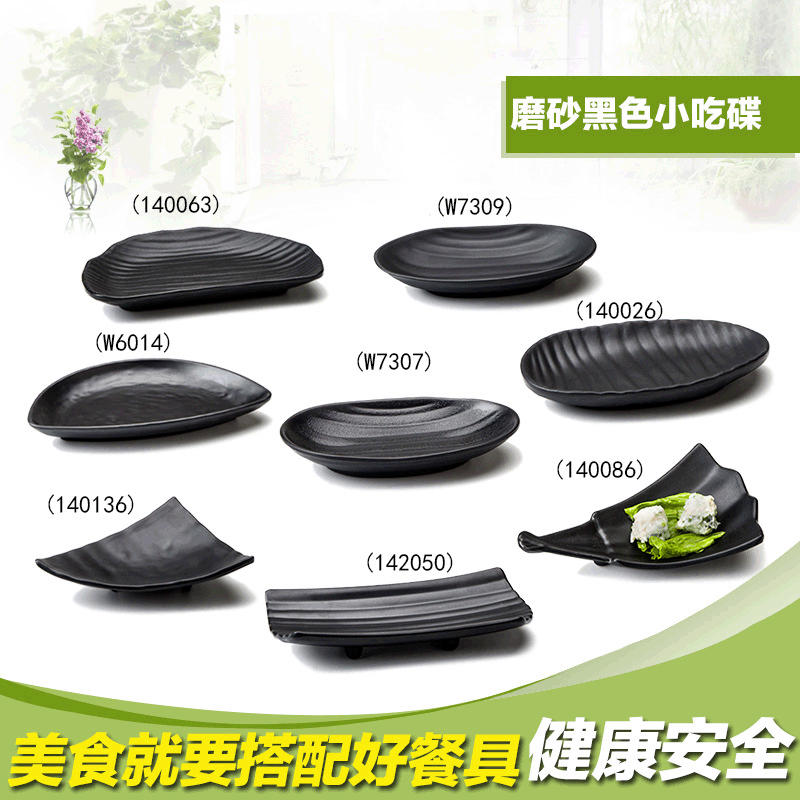 メラミン皿日本式プラスチック模造磁器黒円盤火鍋店料理皿焼肉皿洋食ステーキ平皿商用