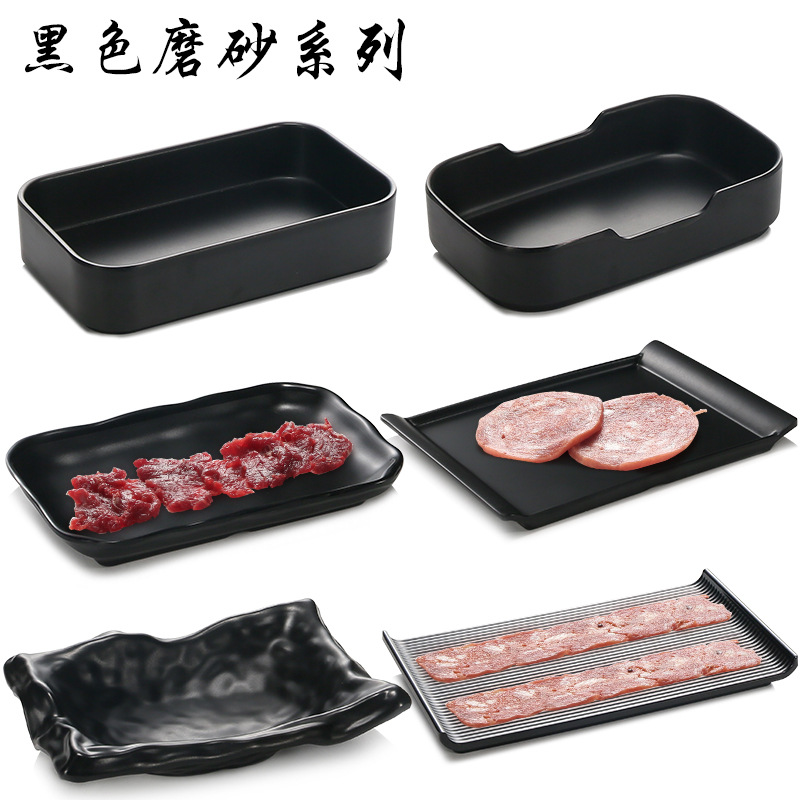 火鍋店a5メラミン食器焼肉皿長角皿野菜皿黒フロスト皿平皿