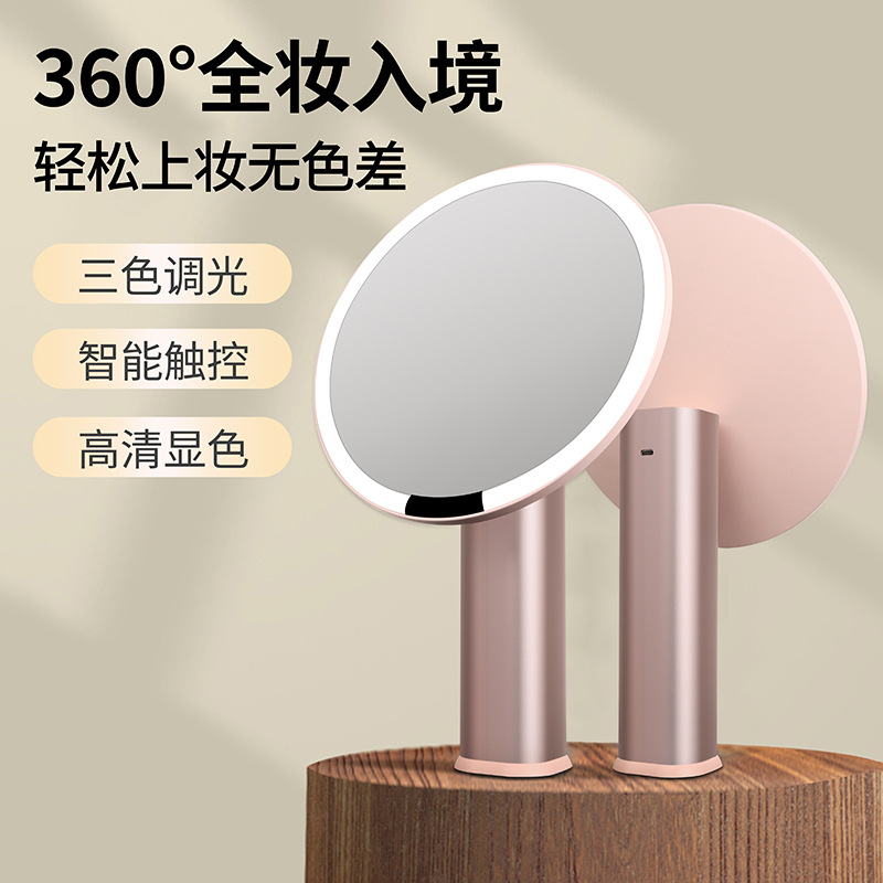 クロスボーダー LED ハンドヘルド化粧鏡寮の寝室の化粧鏡タッチ発光ポータブルミラー充電式化粧鏡女の子用