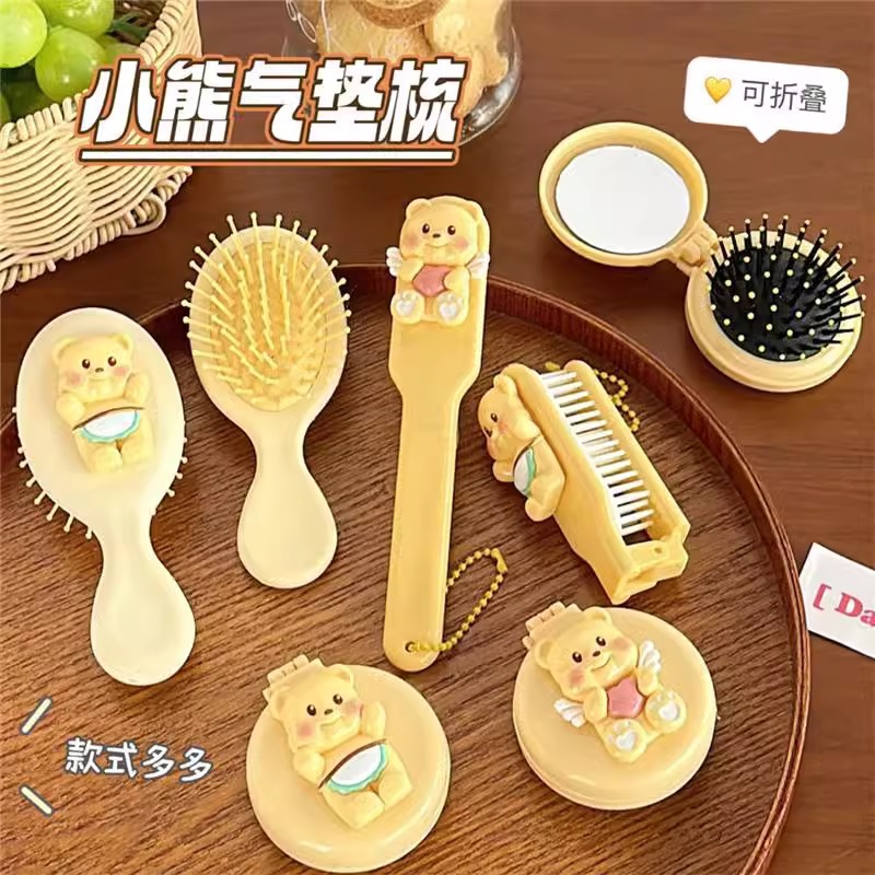 卡通可爱小熊气囊梳子随身便携气垫梳镜梳二合一按摩梳迷你小梳子