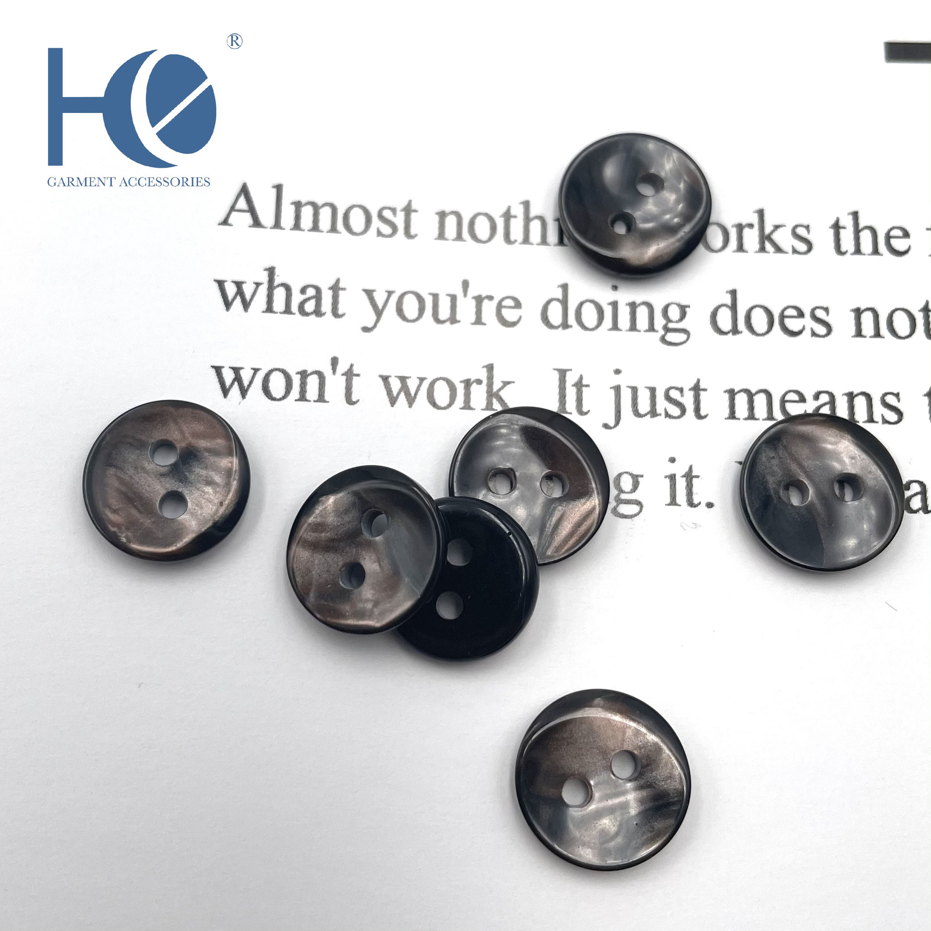 樹脂ボタンは貝殻樹脂のようです。マンハッタンボタンは高級な白い真珠のシャツのボタンメーカー直売です。