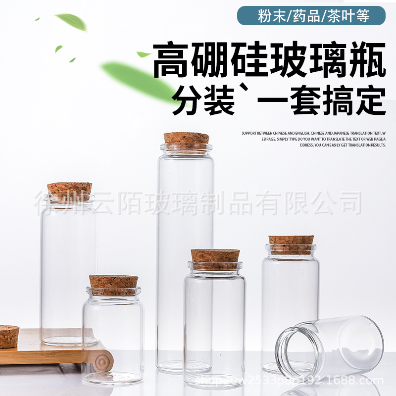 現物47シリーズ高ホウ素シリコンガラス瓶コルク栓口瓶花茶瓶コーヒー瓶沈香線香包装