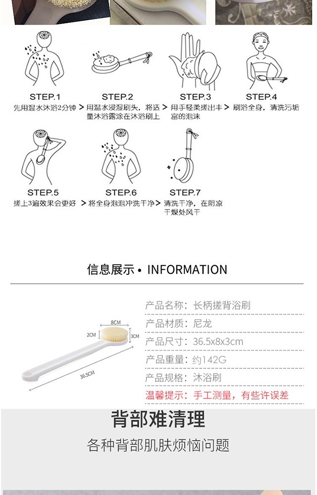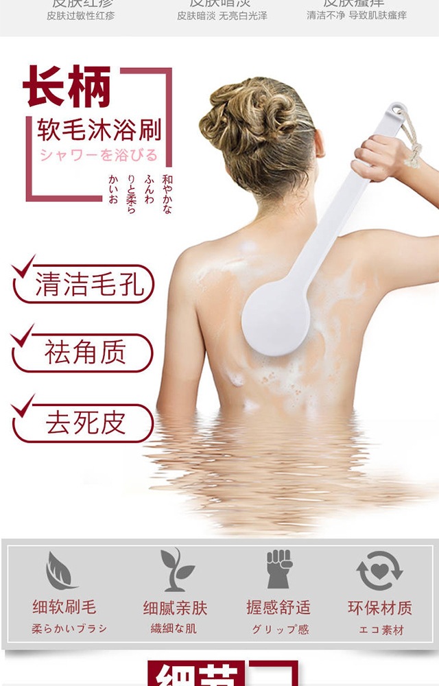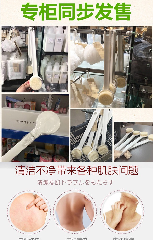 日本無印長柄風呂ブラシ風呂タオルナイロン毛風呂ブラシ風呂神器男女通用