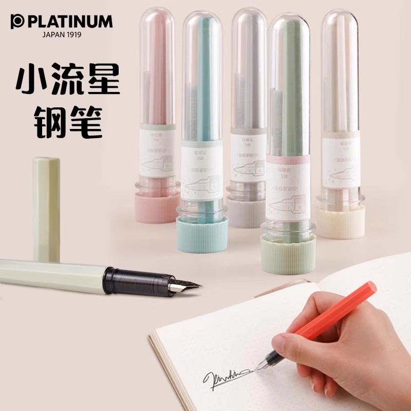 日本のプラチナの小さい流れ星の万年筆の学生は字の入門を練習します。
