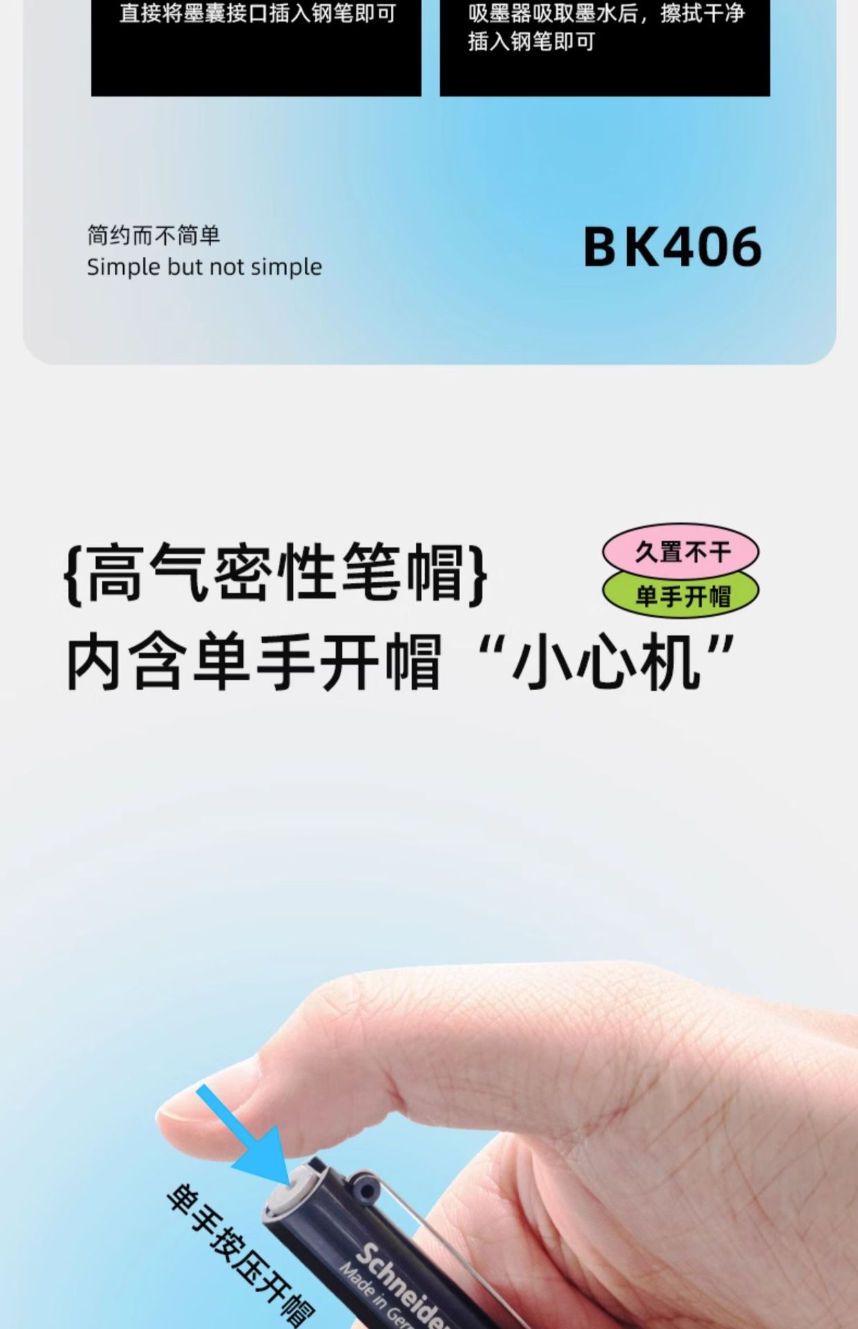 ドイツのシュナイダーペンbk406学生の成人は字の硬いペンの書道のペンの事務の墨の袋のペンのプラスチックの箱を練習します。