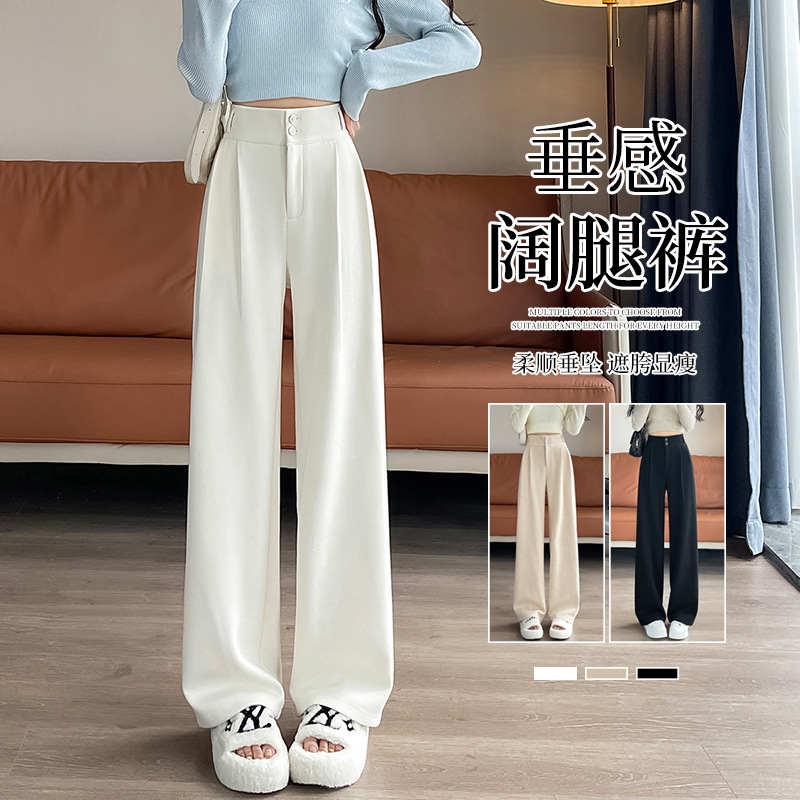 ウールツイルワイドレッグスーツパンツ レディース 春秋冬 2025年新作 ナローバージョン ストレート ダブルボタン ドレープワイドパンツ