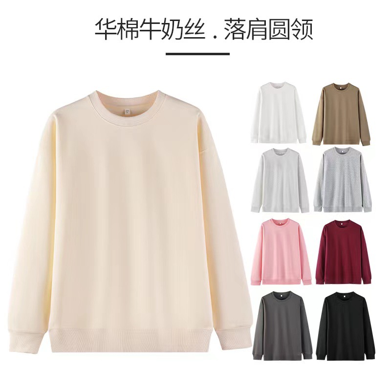 新商品の綿の丸首の複合牛乳のシルクの衛衣はゆったりとしています。