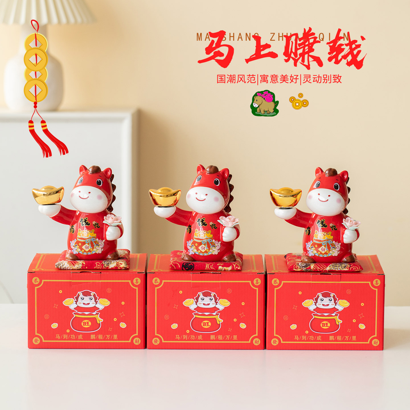 馬のマスコット陶器製干支馬置物、すぐにお金を稼ぐ、レジカウンター、店舗開店、家庭用ギフト、お土産