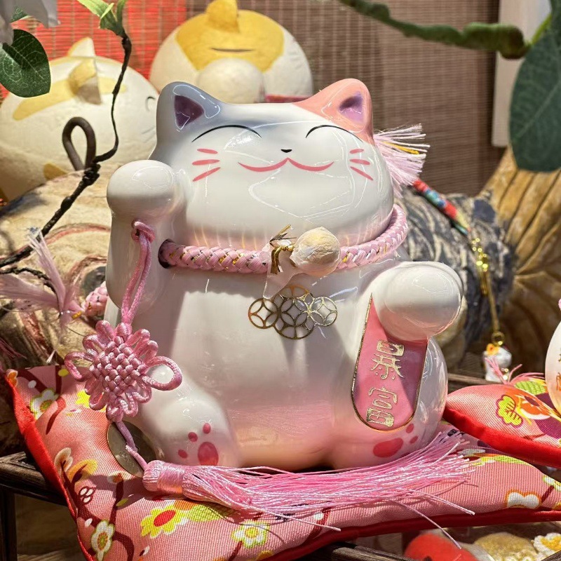 招き猫置物大きいサイズホームセラミック貯金箱アイデアオープンギフトリビングレジ貯金箱