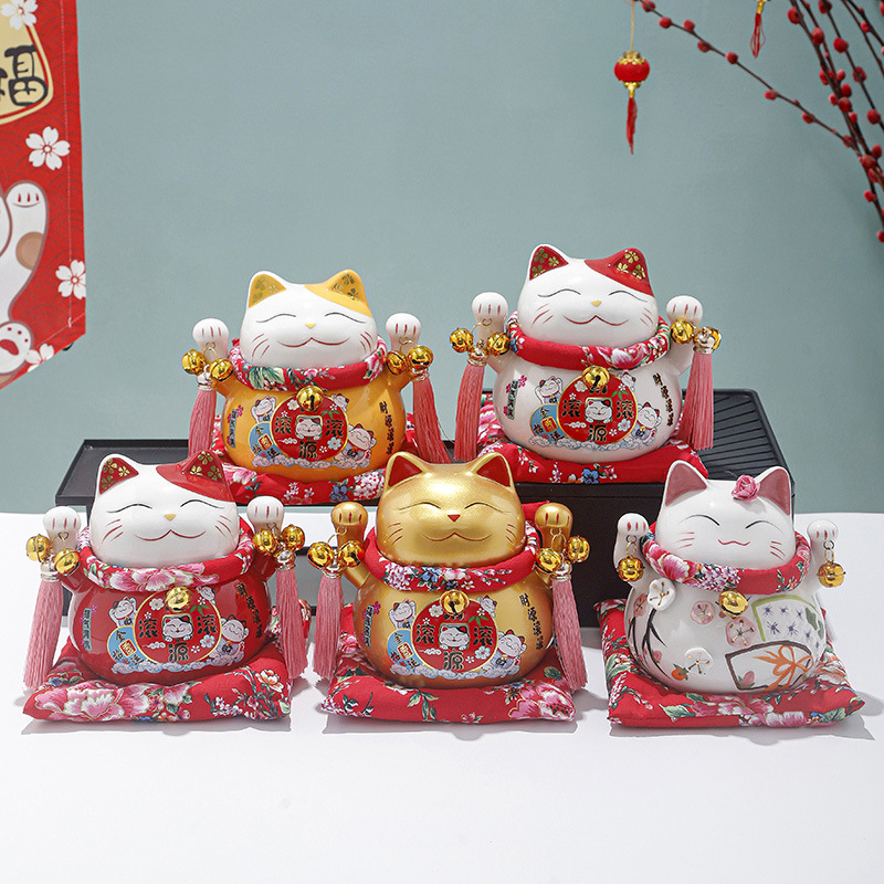 跨境新款招财猫招财陶瓷存钱罐创意新年伴手礼品家居装饰厂家批发