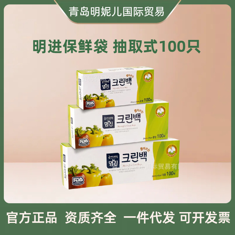 韓国の輸入明進鮮度保持袋食品級平口抽出式冷蔵の中の小型サイズは100枚です。