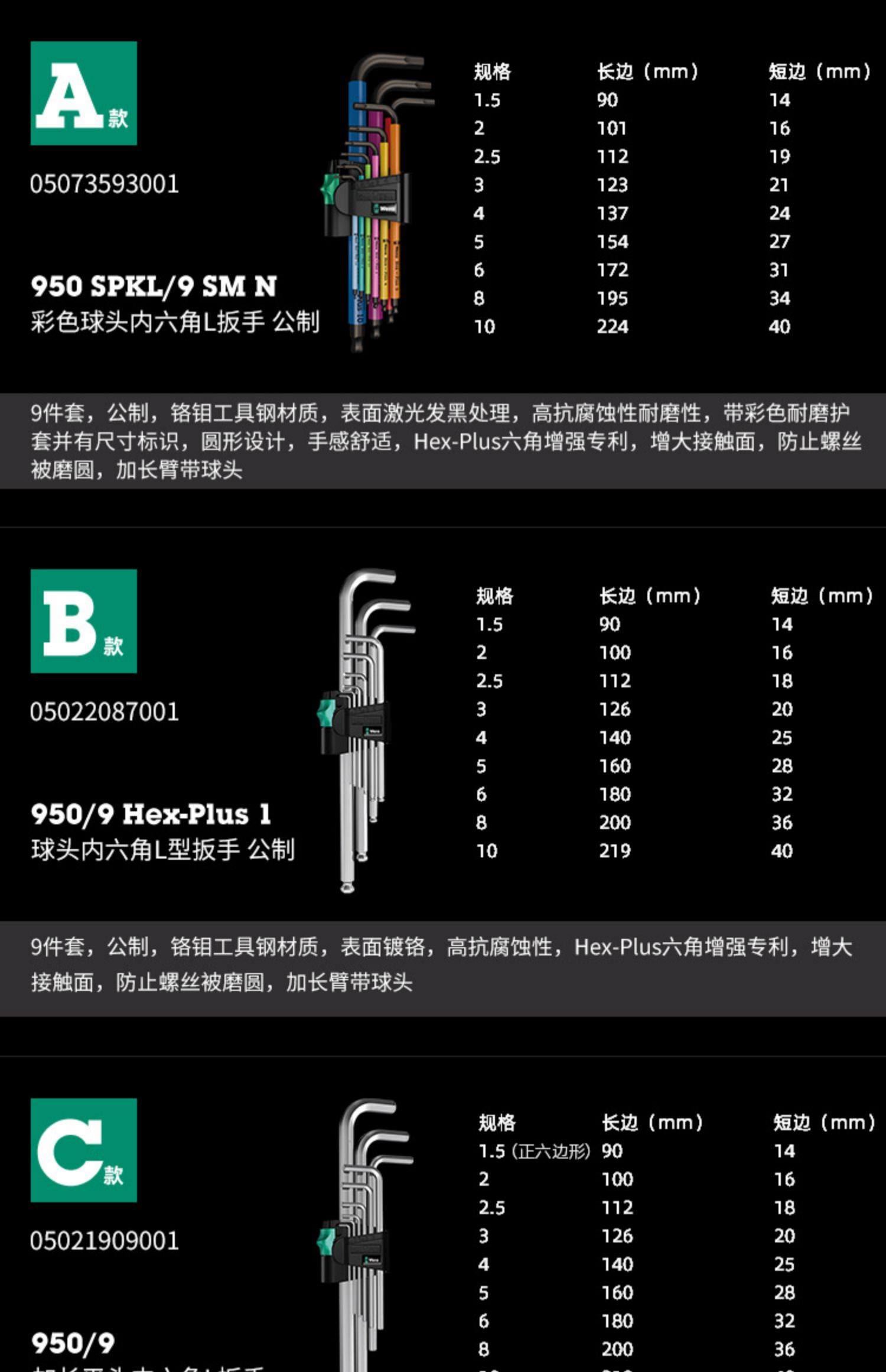 Wera ヴェラ六角レンチセット輸入 950 延長ボールヘッド六角梅花 L レンチドイツ工業用グレード