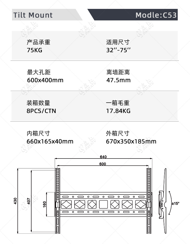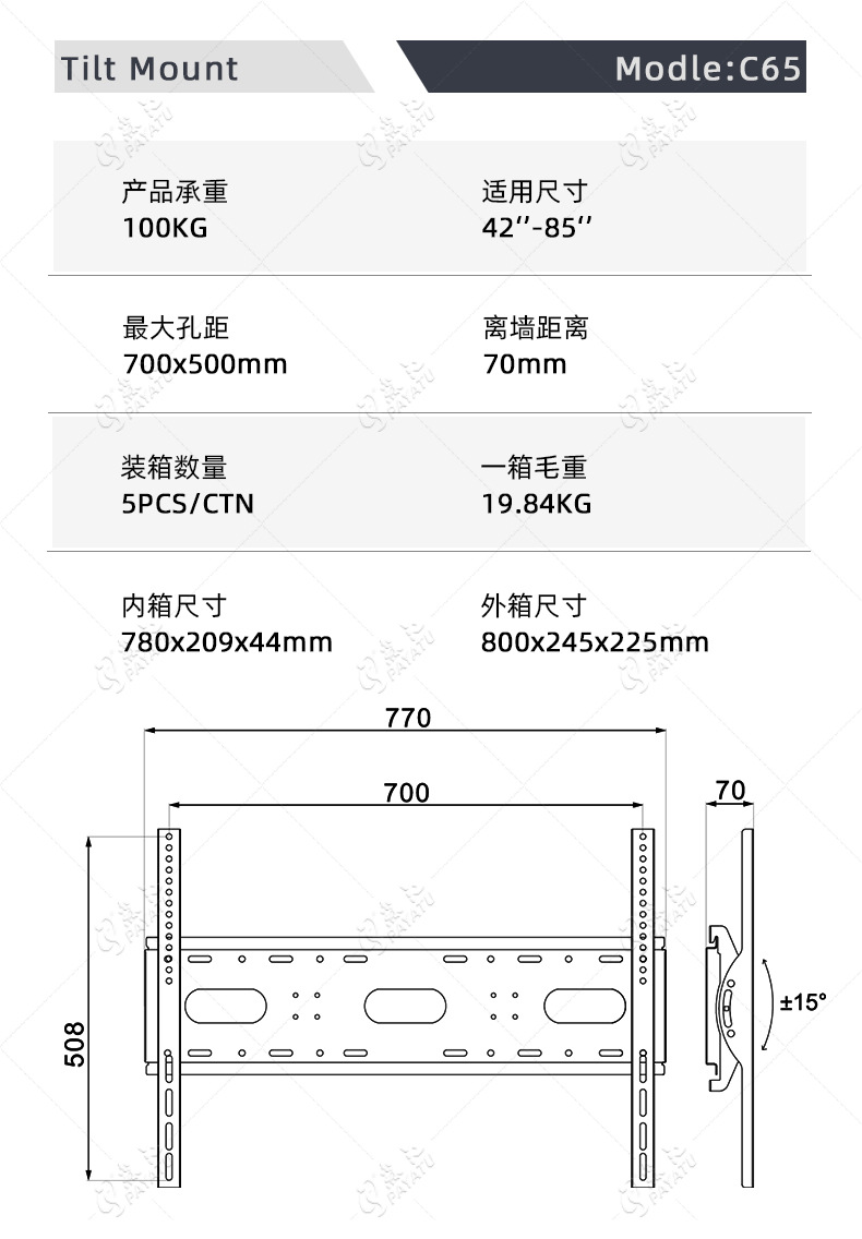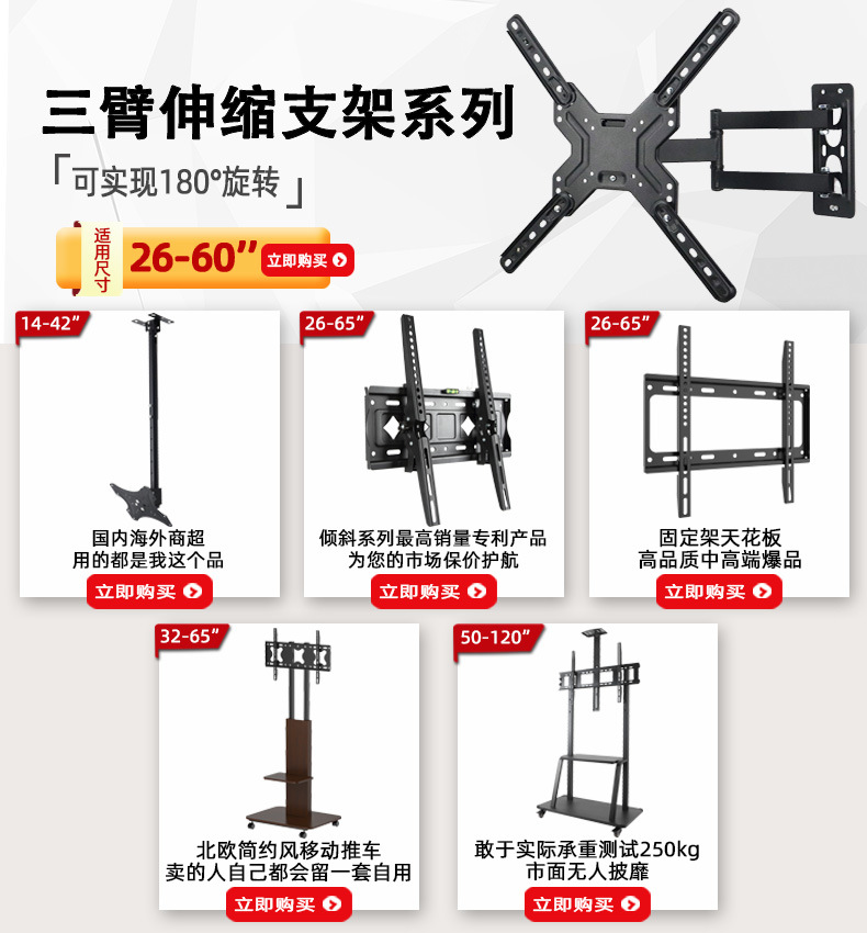 森江固定ブラケットは越境で人気があり、壁掛けテレビブラケットとしてテレビを壁に掛けることができます。適用対象は14-120inchです。