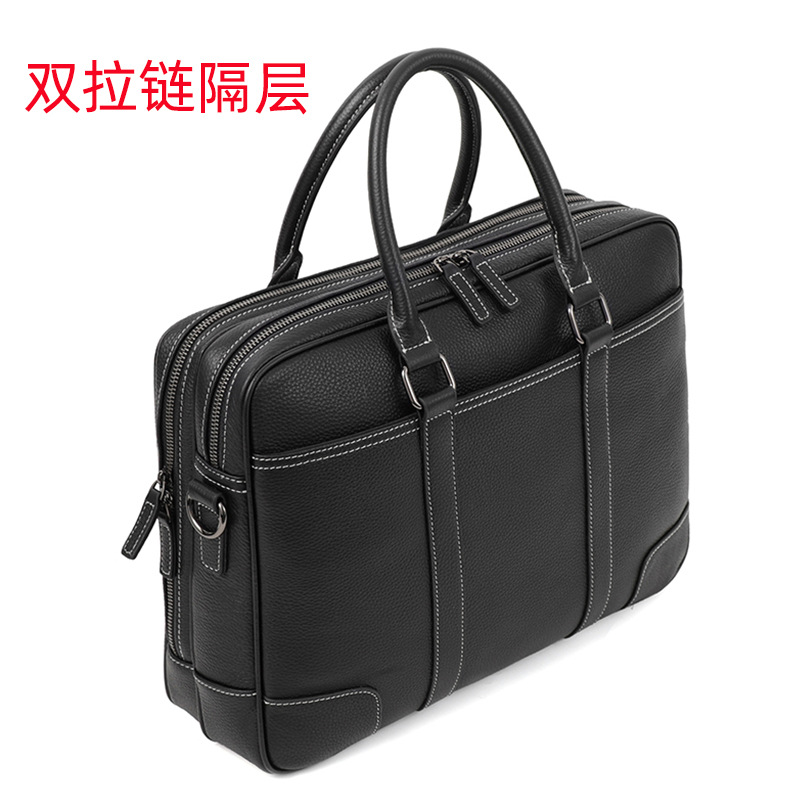 ダブルジッパーブリーフ本革男性カバン14インチパソコンバッグ大容量男性ハンドバッグトップ層牛革ショルダーバッグ