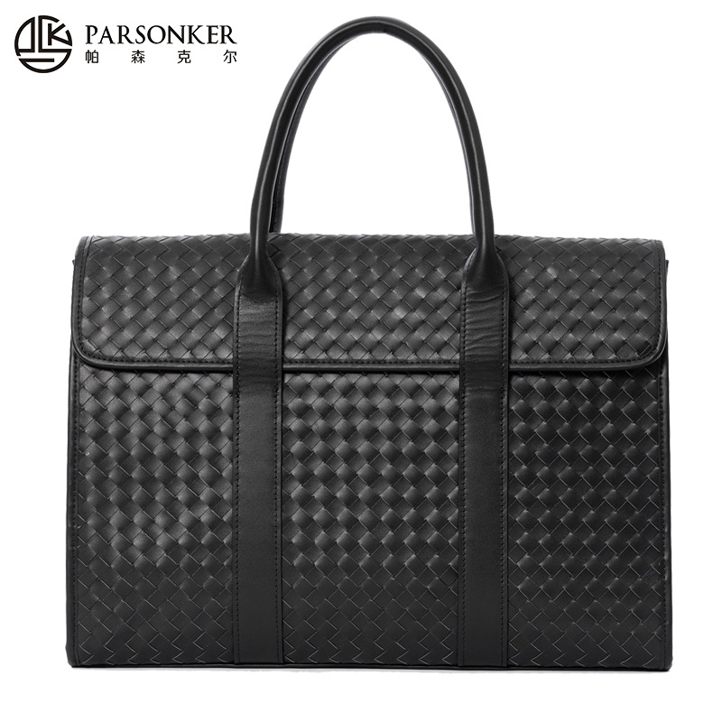 真皮编织男士公文包英伦风文件手提包商务通勤电脑包男会议包现货
