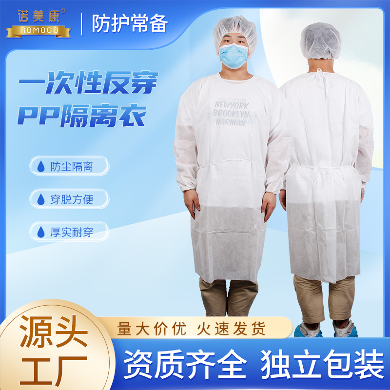 メーカー直発使い捨て不織布隔離服pp逆着式隔離服ゴム袖口防塵服