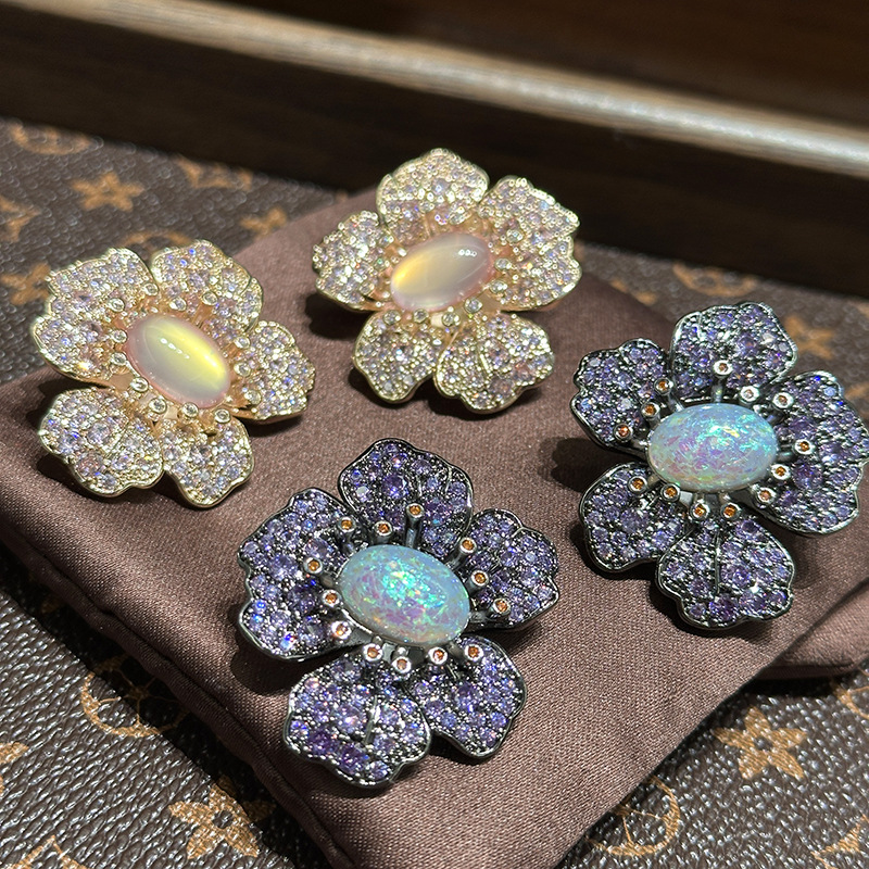 フレンチレトロ立体軽豪華カラー花シンプル気質高炭素ドリル豪華高級感花イヤリング耳飾り