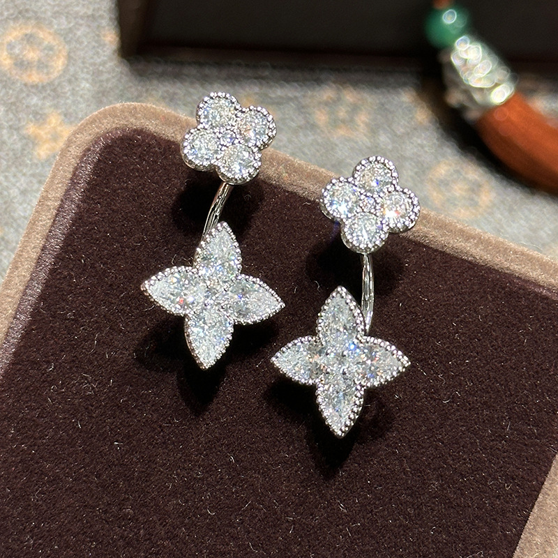 精巧な四葉の花のイヤリングの経典のイヤリングは925銀の針の満ドリルの前後でわずかにジルコンのイヤリングの贈り物の彼女を入れます。