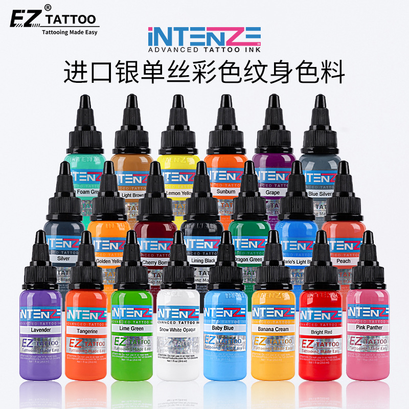 EZタトゥー机器インポートシルバーモノリシックカラータトゥー色料1oz刺青絵の具黒赤白黄青绿インク