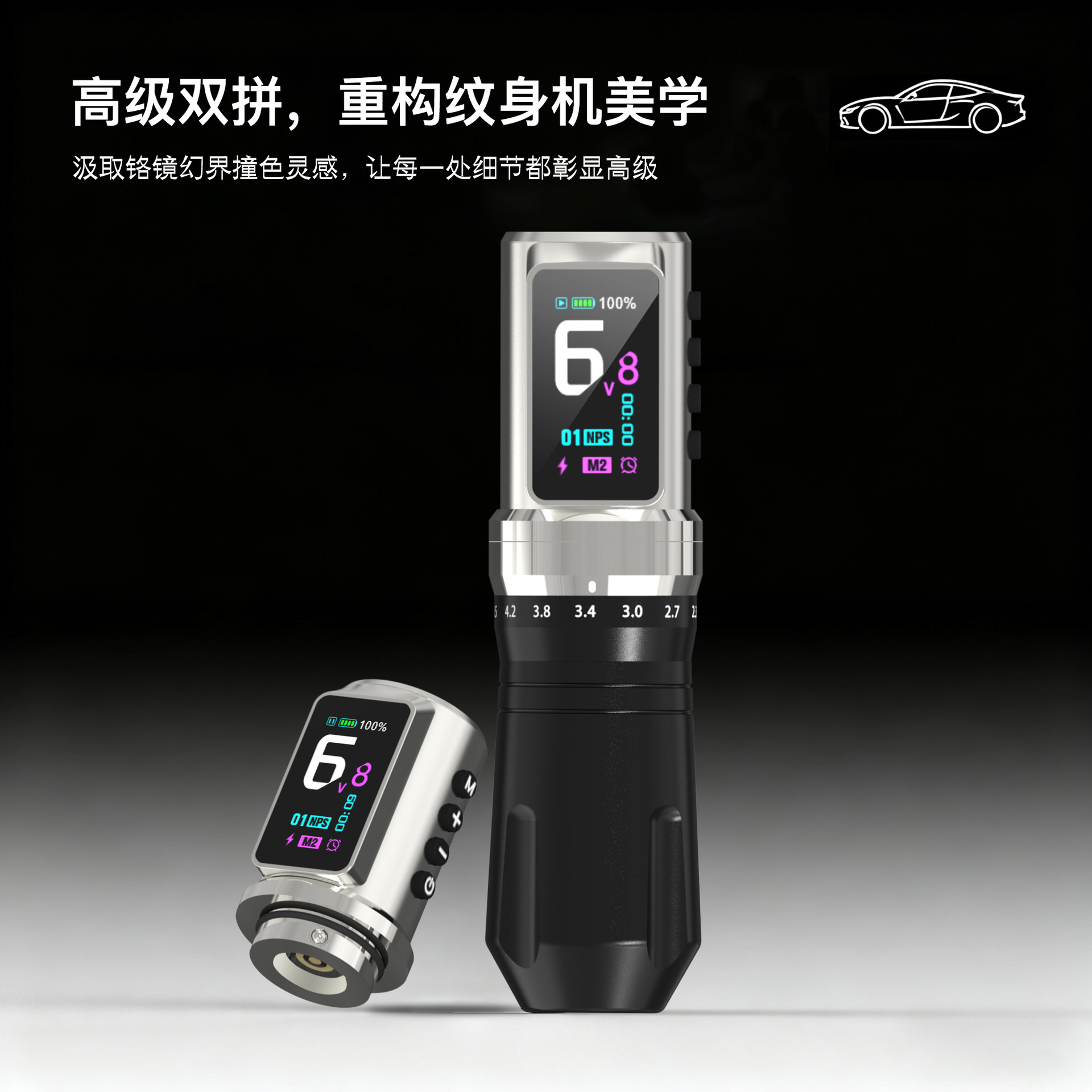 可调行程双电池2200mah*2纹身笔无线纹身机调频割线打雾刺青跨境
