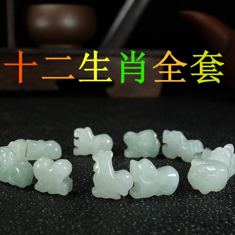 天然翡翠a品生肖ミャンマー翡翠十二生肖散件卸売り立体生肖diyブレスレットアクセサリー
