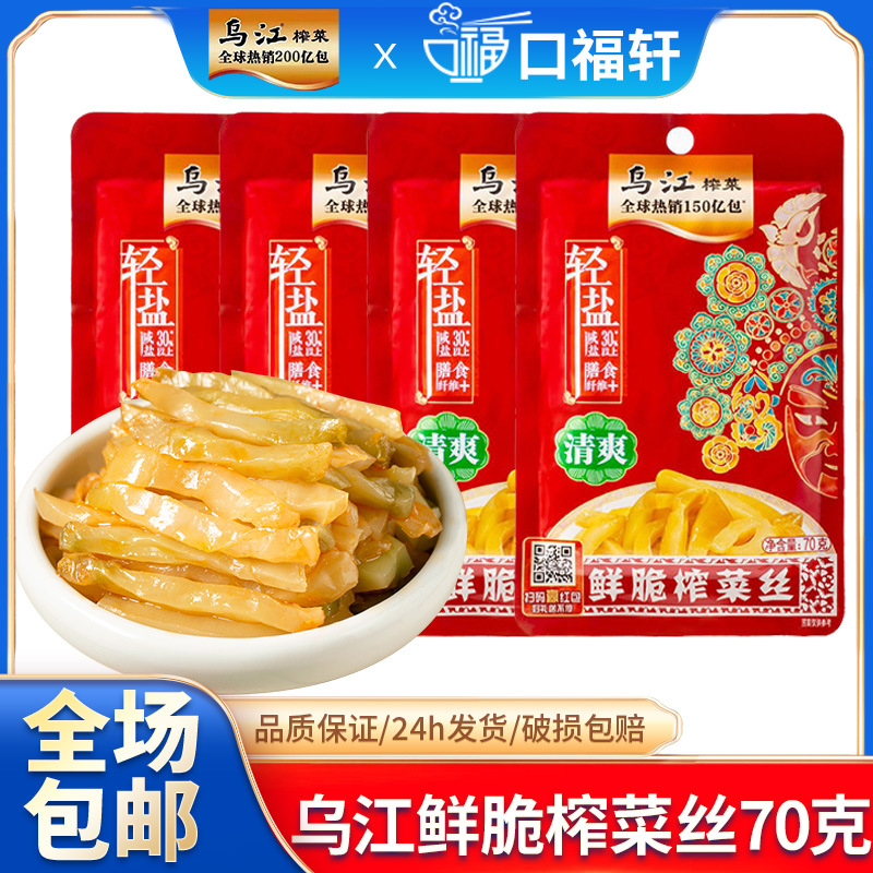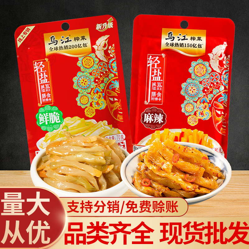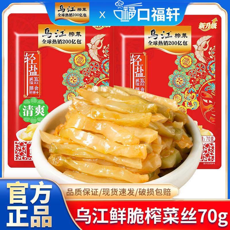 乌江榨菜丝70g袋装轻盐涪陵榨菜清淡开味下饭菜咸一整箱批发分销